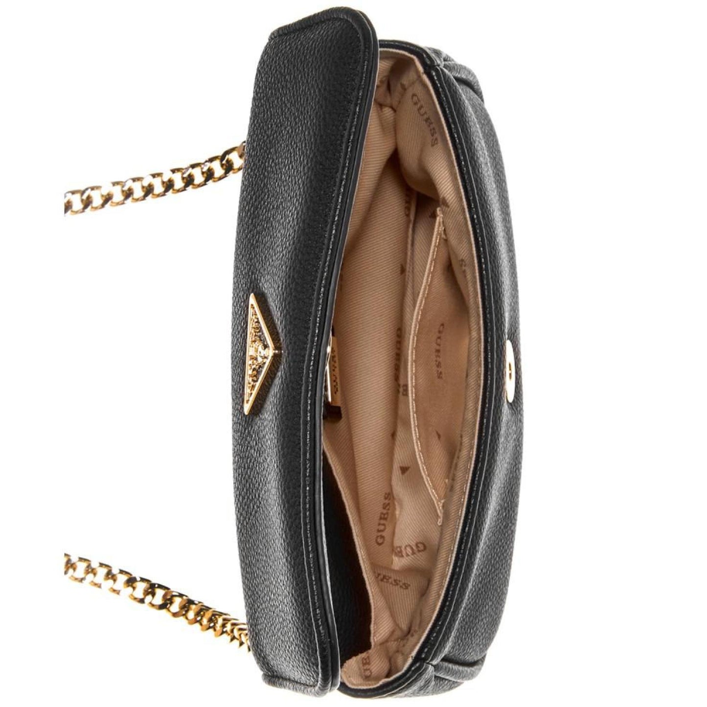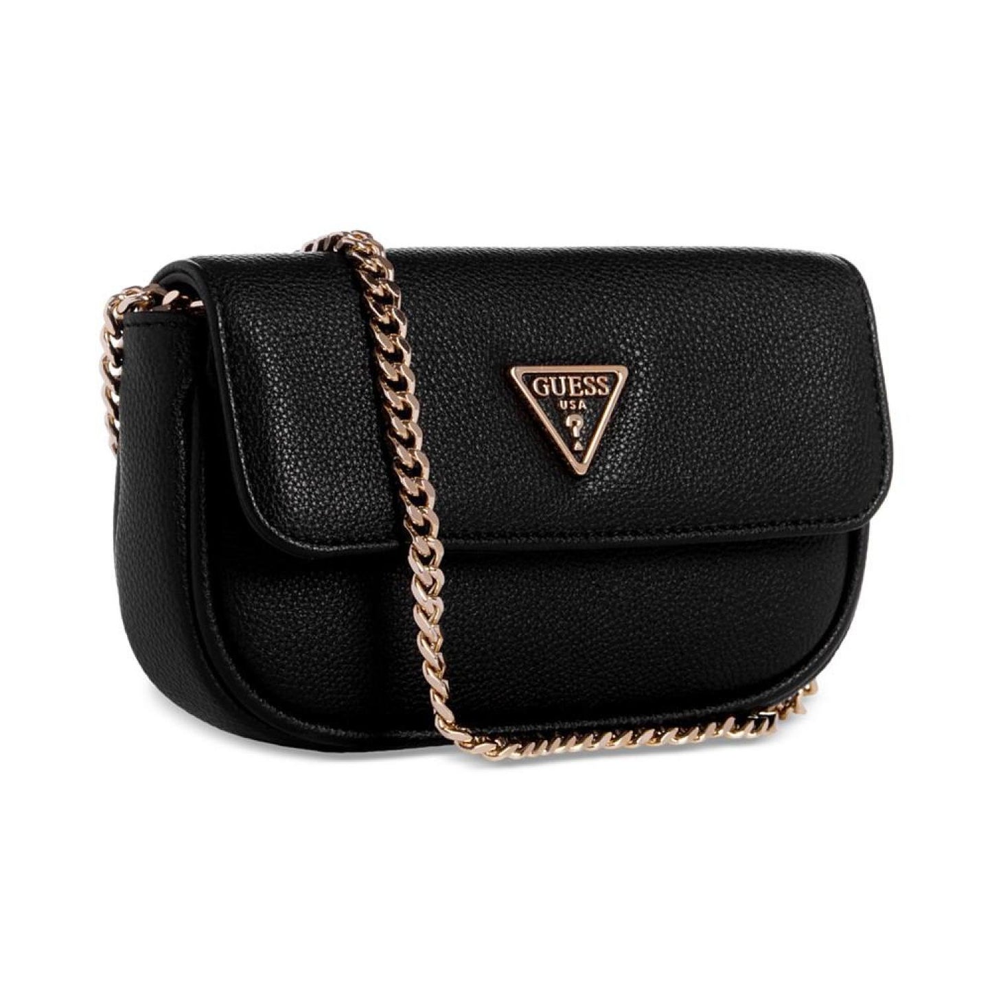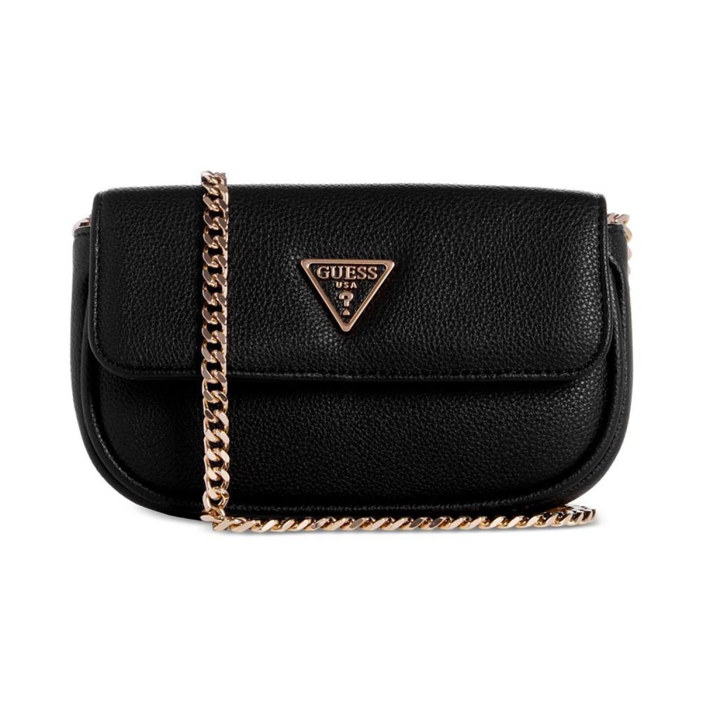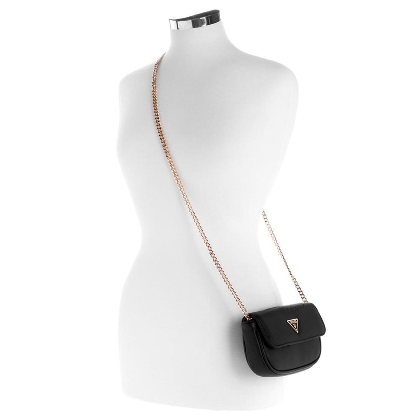 Simple and chic, elevate any outfit with the Jewel Flap Mini Clutch by GUESS. Mini sized bag; 6-3/4"W x 4-1/4"H x 2-1/4"D 22-3/4"L removable chain strap Magnetic snap closure Gold-tone hardware Interior slip pocket Polyurethane Spot clean Imported