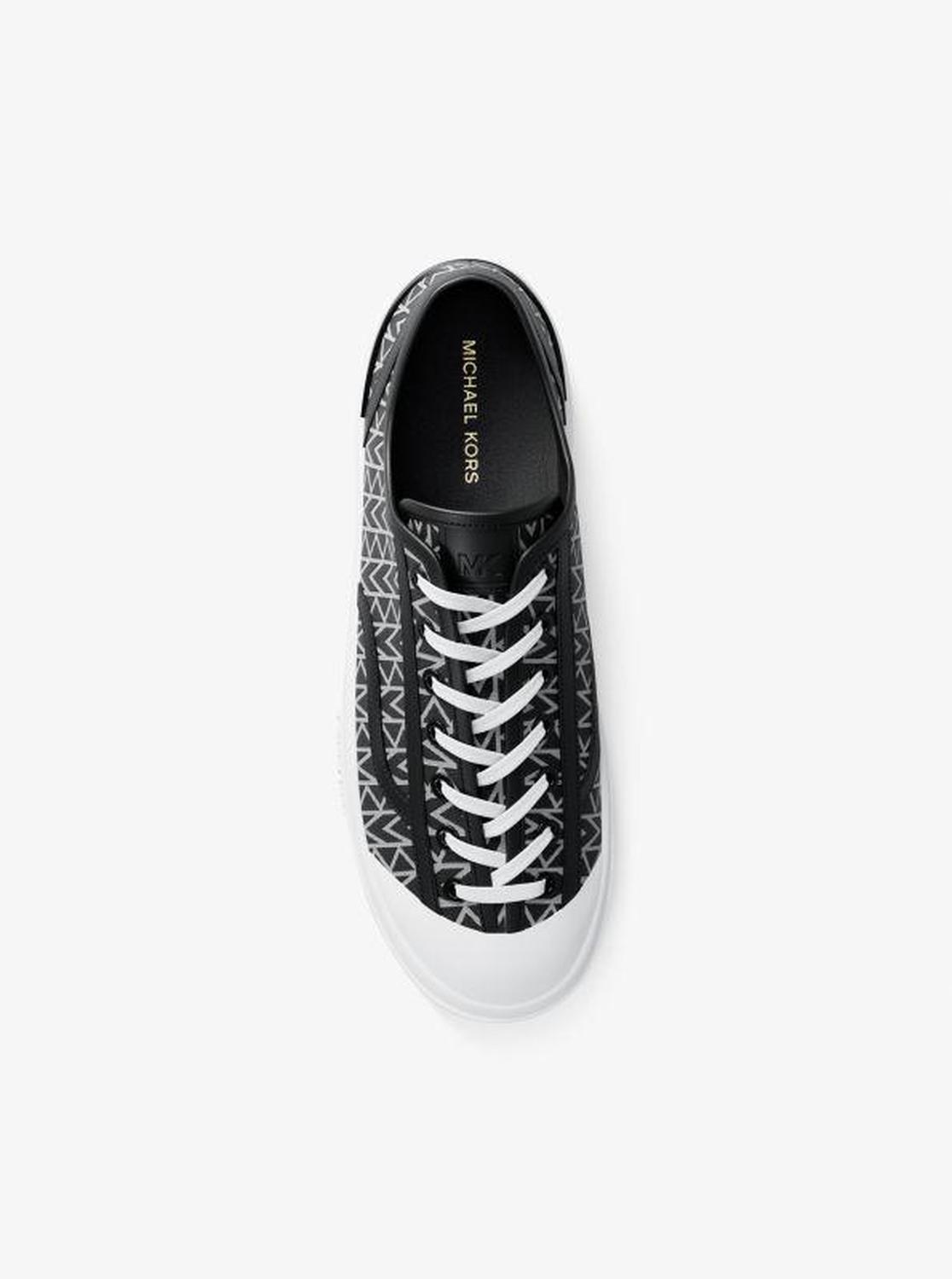 • Our Jude lace-up sneaker is the kind of style you’ll pair with everything. A classic skate-inspired design with a rubber cap toe, it’s crafted from MK2000 logo jacquard for an iconic finish and detailed with sleek leather trim. Juxtapose the casual silhouette with a sweet dress for a perfectly balanced look.