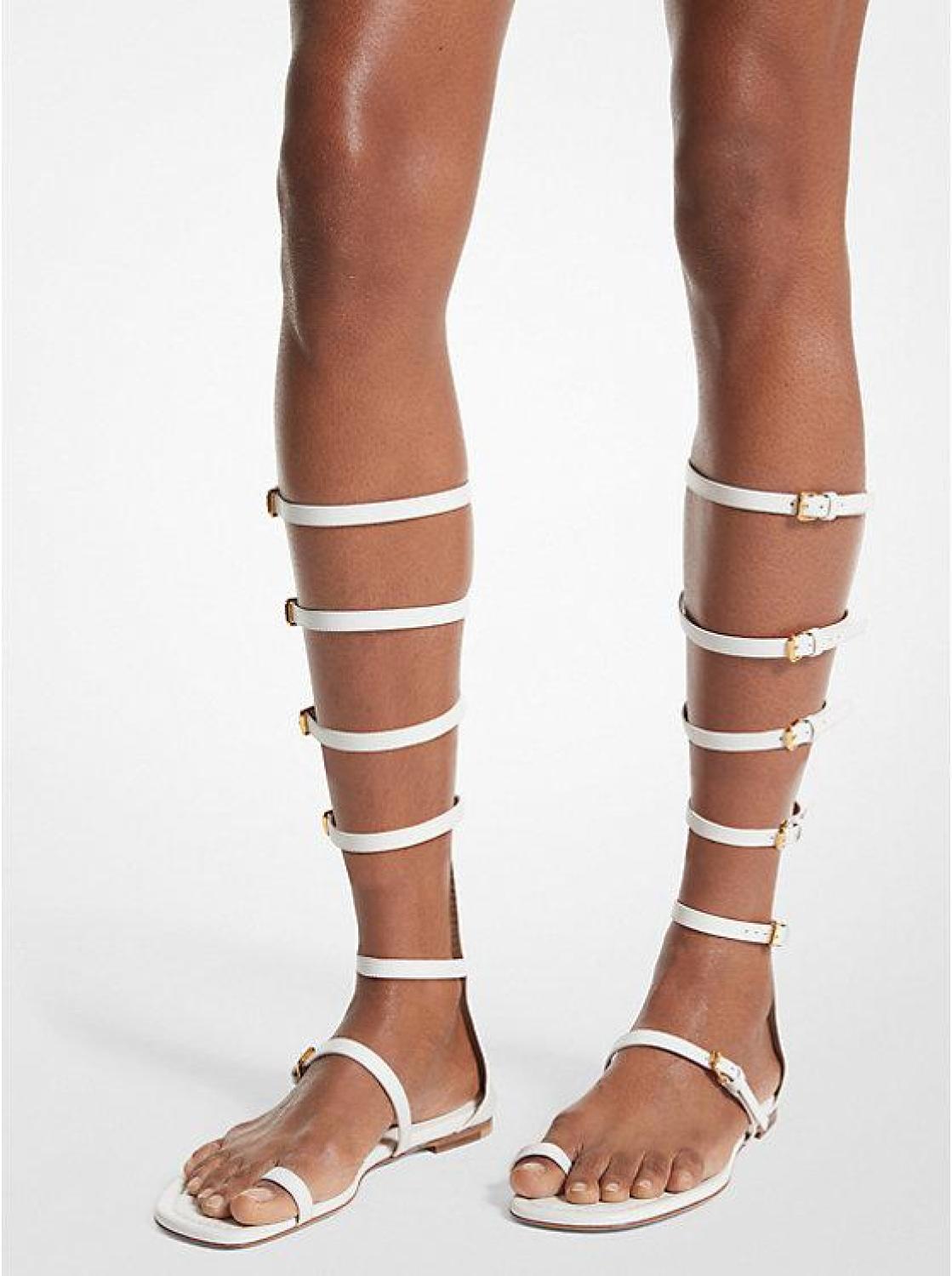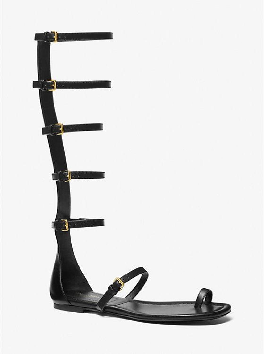 • Our Juliette sandals will lend a cool, bohemian edge to any ensemble. Styled with leggy silhouettes on the Spring/Summer 2024 runway, this Italian-made leather pair features slender, leg-flattering straps and delicate gold-tone buckles for a polished finish. Balance the mid-calf design with the season’s flirty baby doll tank dress.