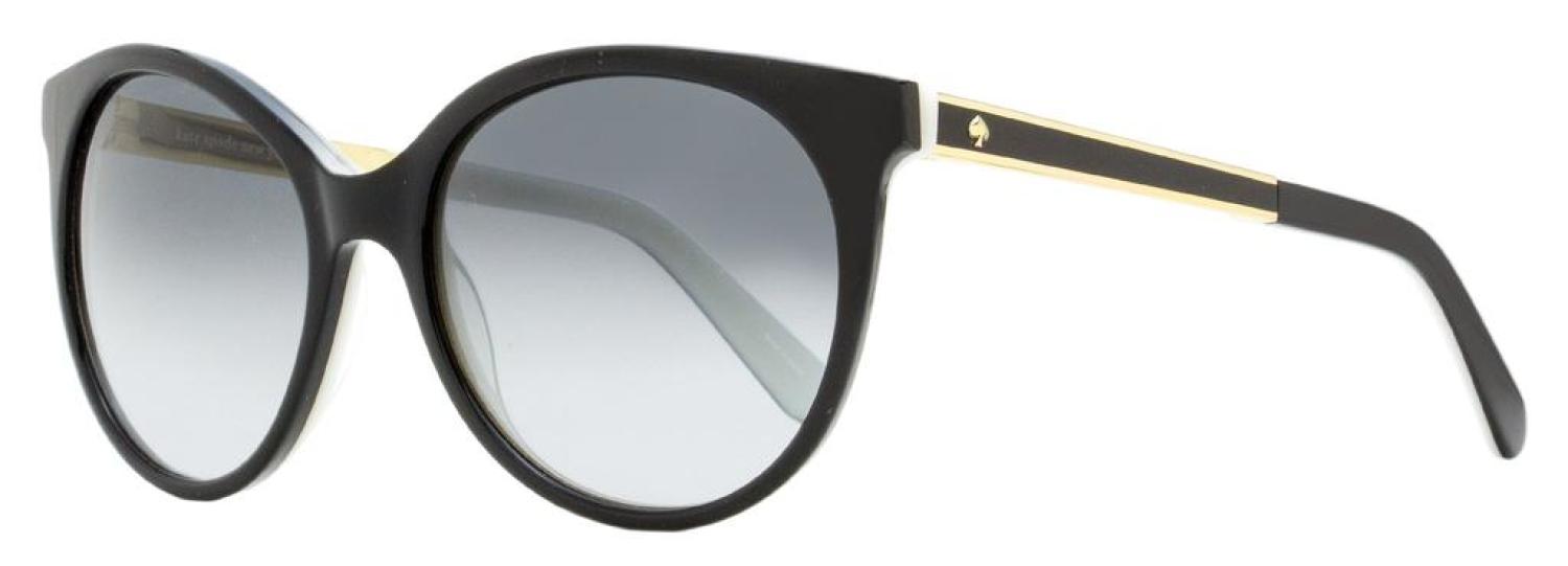 The Kate Spade Amaya Sunglasses feature an oval lens shape for women. The Acetate frame is contrasted with metal details on the temples and feature the iconic Spade logo on the left temple only. Kate Spade made her mark as a designer with her iconic handbags that were detailed with sophisticated colors and accents. Providing 100% UV protection from the sun's harmful rays these sunglasses are functional in addition to being fashionable. Frame Material - Plastic (Acetate)/Metal Frame Color - Black/Gold/White Lens Color - Gray Gradient Size - 53-18-135 Made in China Includes original case and cloth