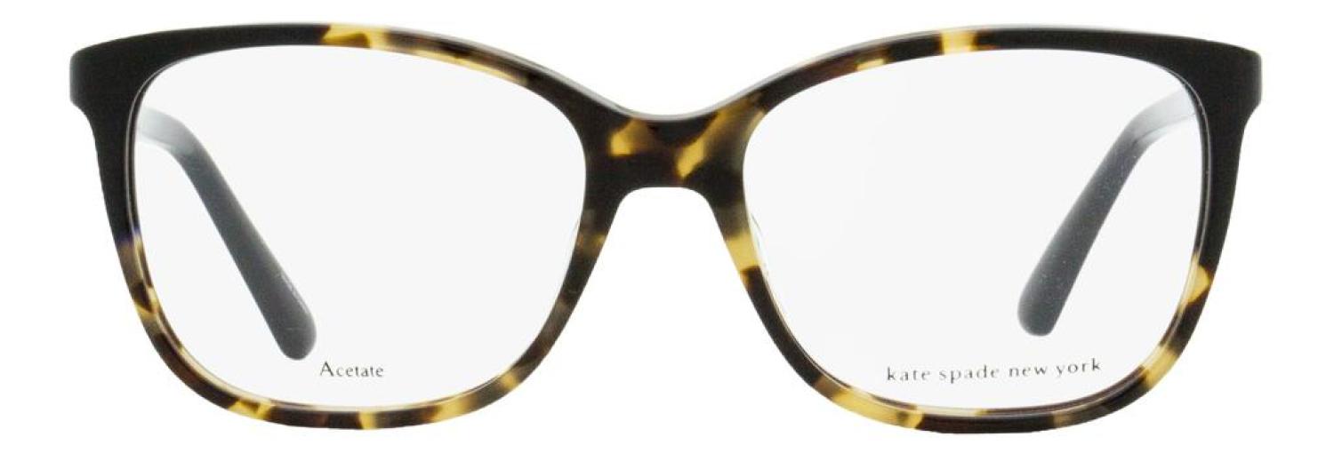 The Kate Spade Karlyn optical frames feature a squared off lens shape suitable for women. The Acetate frame features spring hinges and iconic Spade logo at the left temple only. Kate Spade made her mark as a designer with her iconic handbags that were detailed with sophisticated colors and accents. Please note these eyeglasses are provided with Demo Lenses in order to demonstrate the final appearance of your frames. Please visit your local Optometrist or Optician to replace with optical quality lenses. Frame Material - Plastic (Acetate) Frame Color - Havana/Black Lens Color - N/A Size - 51-16-140 Made in China Includes original case and cloth