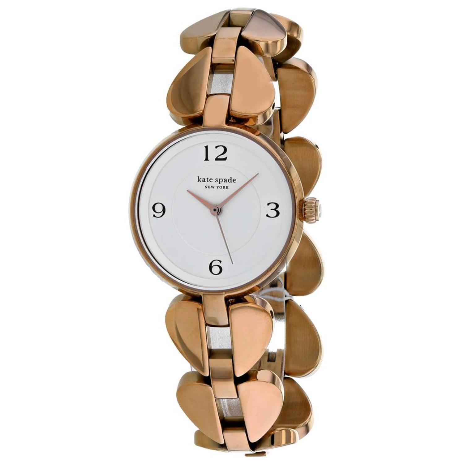 Stainless steel case, Stainless steel bracelet, White dial, Quartz movement, Scratch resistant mineral, Water resistant up to 3 ATM - 30 meters - 100 feetSpecification - Gender - Women Dial Color - White Band Color - Rose gold Case Diameter - 18mmmm Bracelet or Strap Width - 28mmmm Band Material - Stainless steel Crystal Type - Mineral Crown Type - Push/pull Clasp Type - Deployment Movement - Quartz