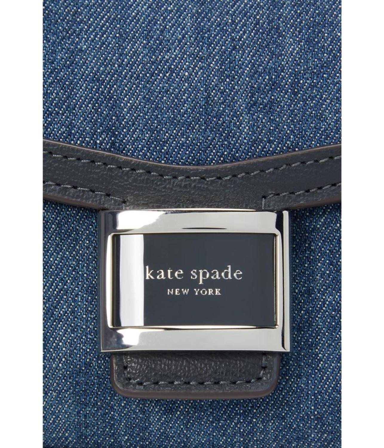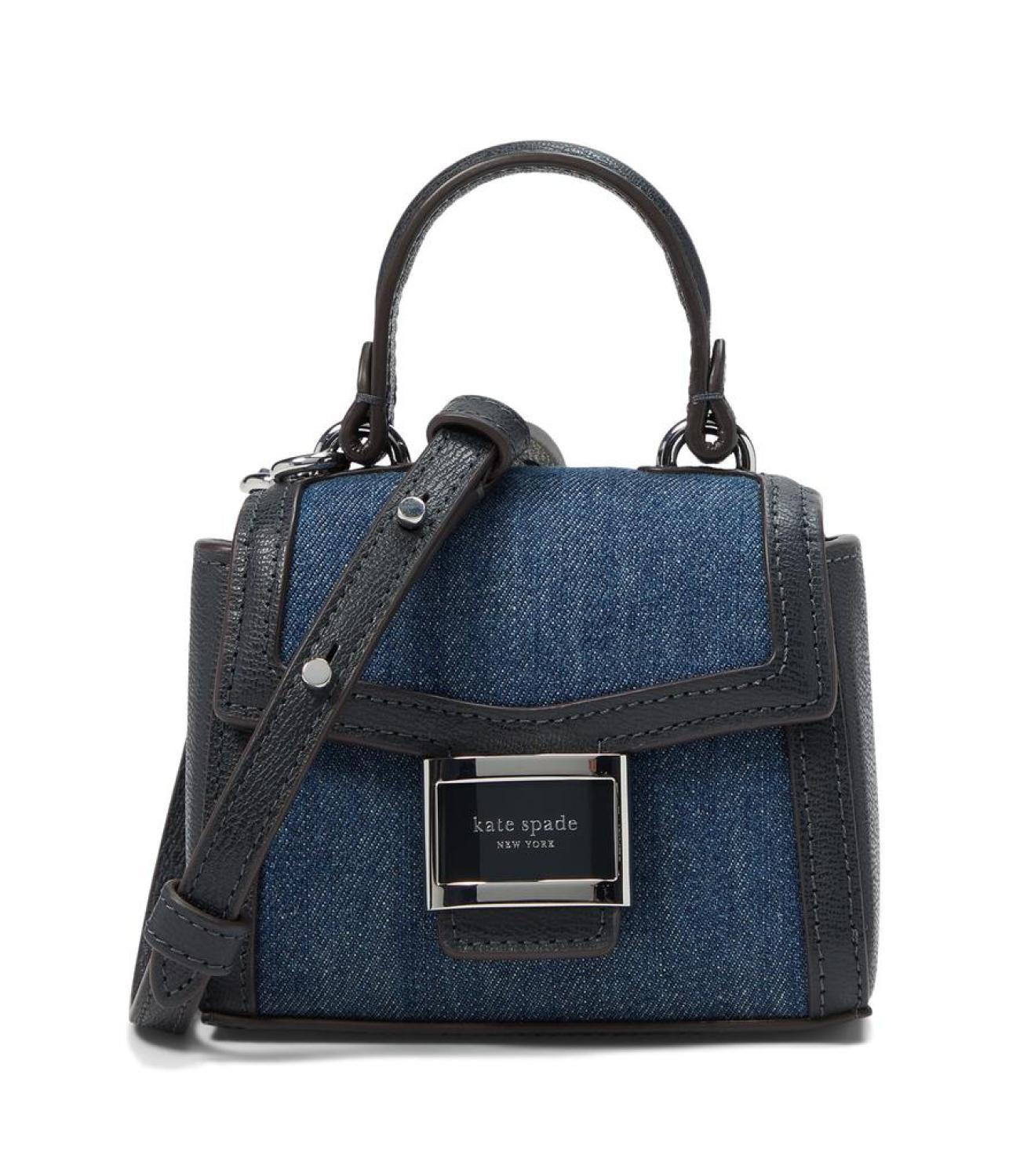 • Add a stylish touch to versatile looks by complementing them with the Kate Spade New York® Katy Denim Micro Crossbody Bag that comes in a mini design with a denim construction. The mini bag features a top grab handle, an adjustable crossbody strap, magnetic snap flap closure, interior card slot, and plaque logo for authenticity.