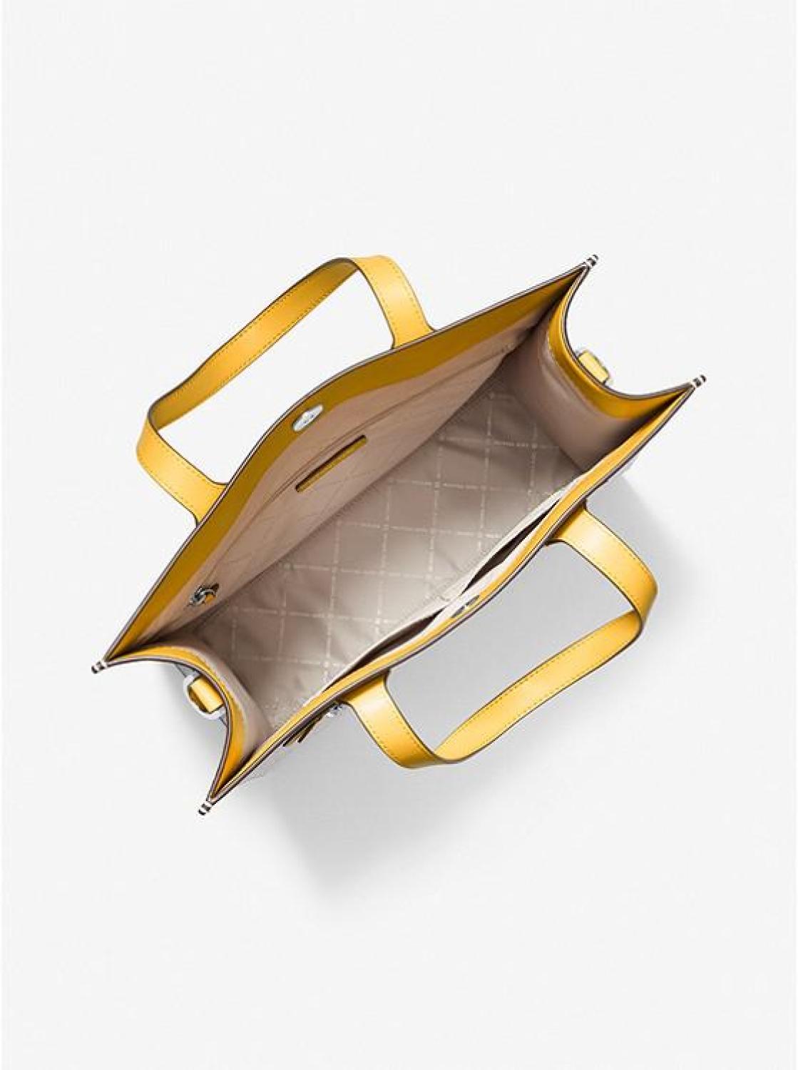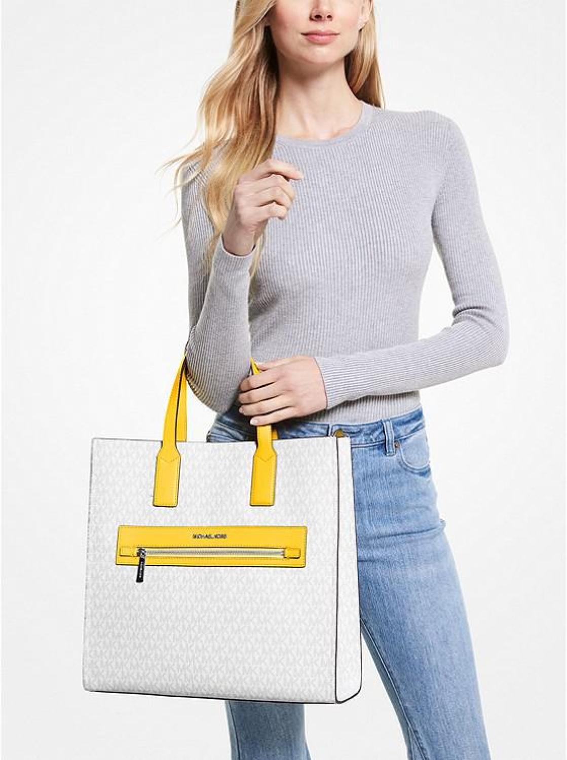 Our Kenly tote bag is an elevated, signature take on the classic carryall. Rendered in a structured silhouette, it’s printed with the brand’s iconic initials and features eye-catching logo taping. Its pocketed interior is spacious enough to hold your laptop, wallet and even a change of shoes. Carry it by the top handles or wear it crossbody when you’re en route from the gym to the office. Tote bag Logo-print canvas 89.4% coated canvas/9.6% polyester/1% polyurethane Gold-tone hardware 14.25”W X 14”H X 5.5”D Handle drop: 6” Adjustable strap: 16”-25” Exterior details: front zip pocket Interior details: back zip pocket, 2 back slip pockets, front zip pocket Lining: 100% polyester Snap fastening Dust bag not included Imported Tote bag Logo-print canvas 89.4% coated canvas/9.6% polyester/1% polyurethane Gold-tone hardware 14.25”W X 14”H X 5.5”D Handle drop: 6” Adjustable strap: 16”-25” Exterior details: front zip pocket Interior details: back zip pocket, 2 back slip pockets, front zip pocket Lining: 100% polyester Snap fastening Dust bag not included Imported