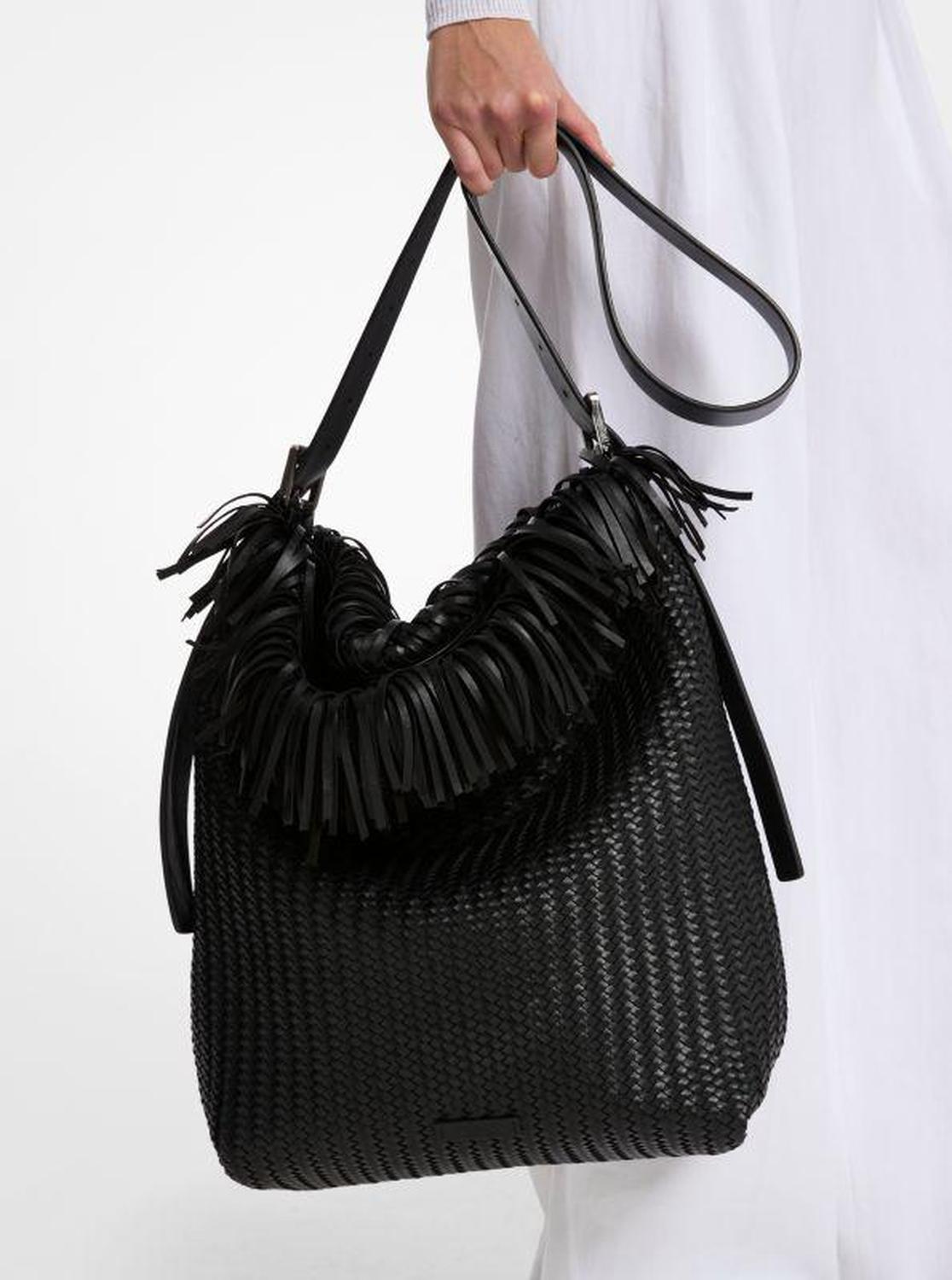 • The Kiera hobo bag is a masterclass in exquisite Italian craftsmanship, as seen on the Spring/Summer 2025 runway. Intricately cut strips of supple calf leather are hand woven together and showcase an artisanal finish, while delicate fringed trim along the top creates playful movement. Designed with a thick, double buckled adjustable strap, this luxurious accessory exudes the insouciant sophistication of the season. Style it with a slouchy trench and fluid shorts to complement the warm-weather staple.