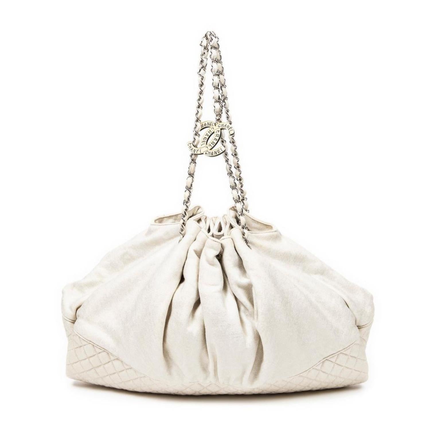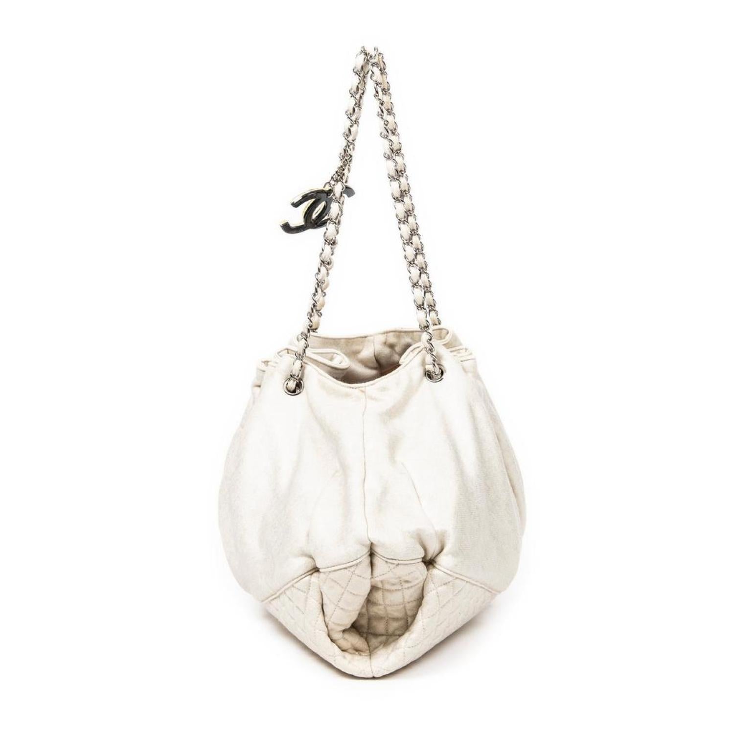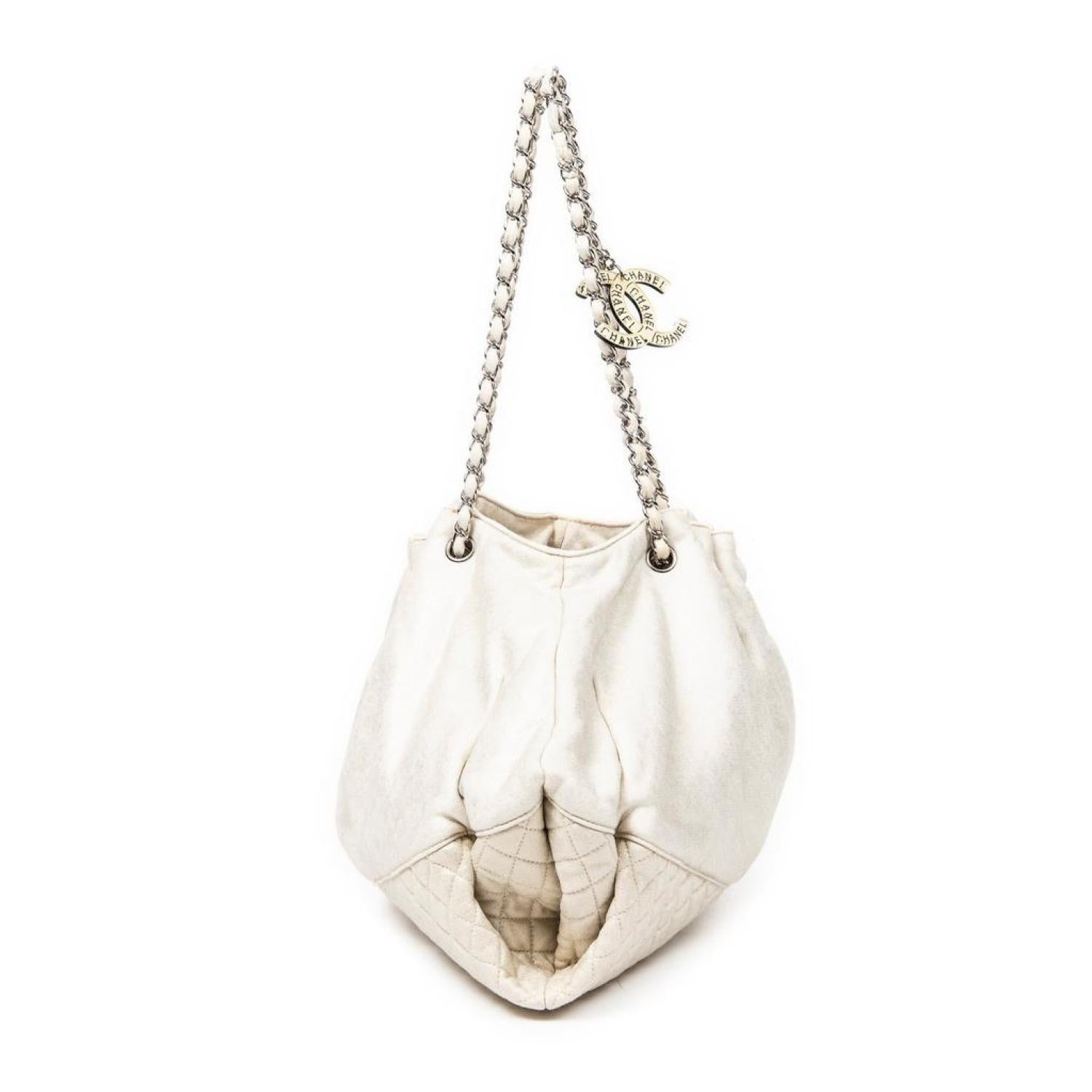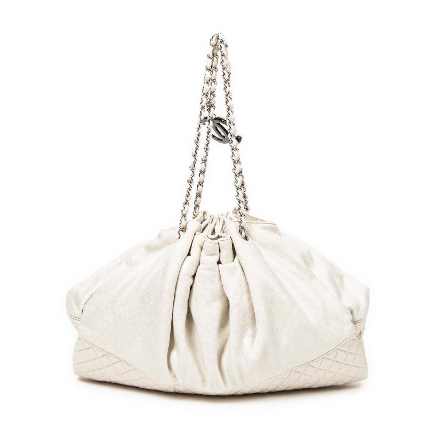 Chanel Shoulder Bag in White Quilted Jersey Canvas and Silver hardware. Dimensions - "45,5*30*16cm". Serial number - 12107107 (2008-2009). Inclusions - None.