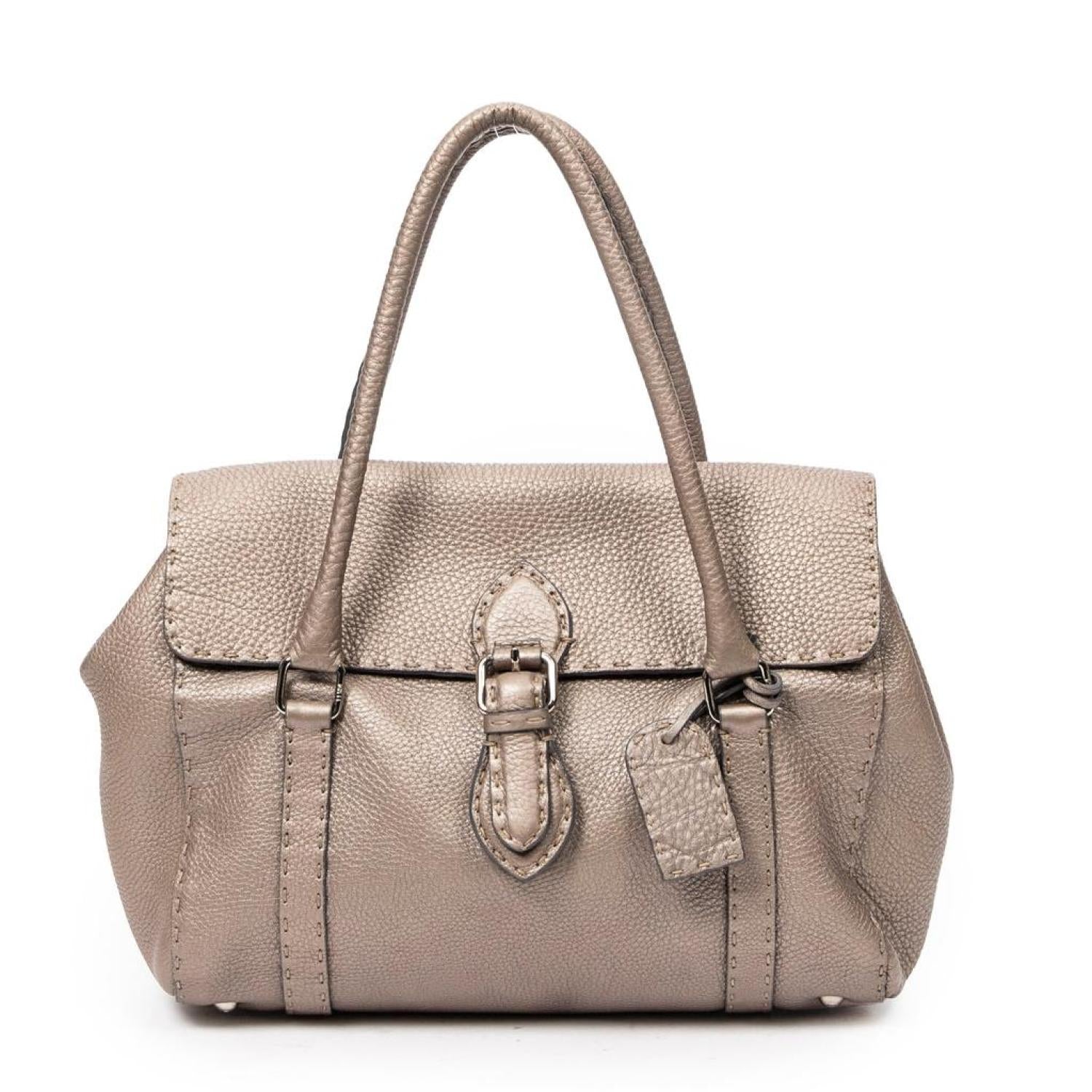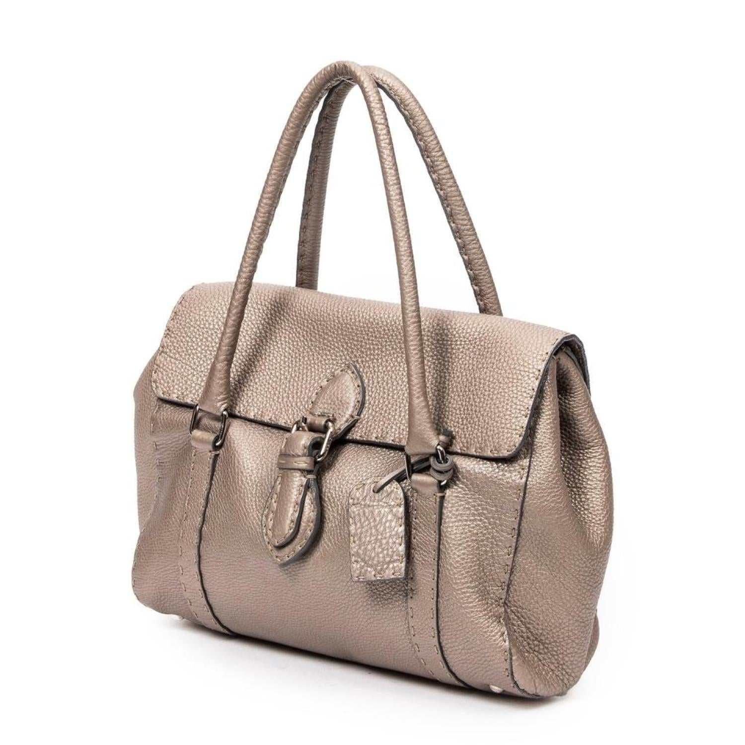 Fendi Shoulder Bag in Gray Grained Leather and Silver hardware. Dimensions - 31*25*11cm. Serial number - 2454-8BR547-NDU-069. Inclusions - tag charm.