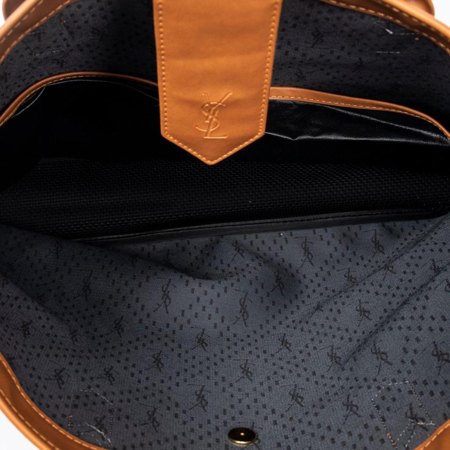 • Yves Saint Laurent Shoulder Bag in Navy/Brown Woven Coated Canvas and Gold hardware. Dimensions - 40*35*7cm. Serial number - None. Inclusions - None.