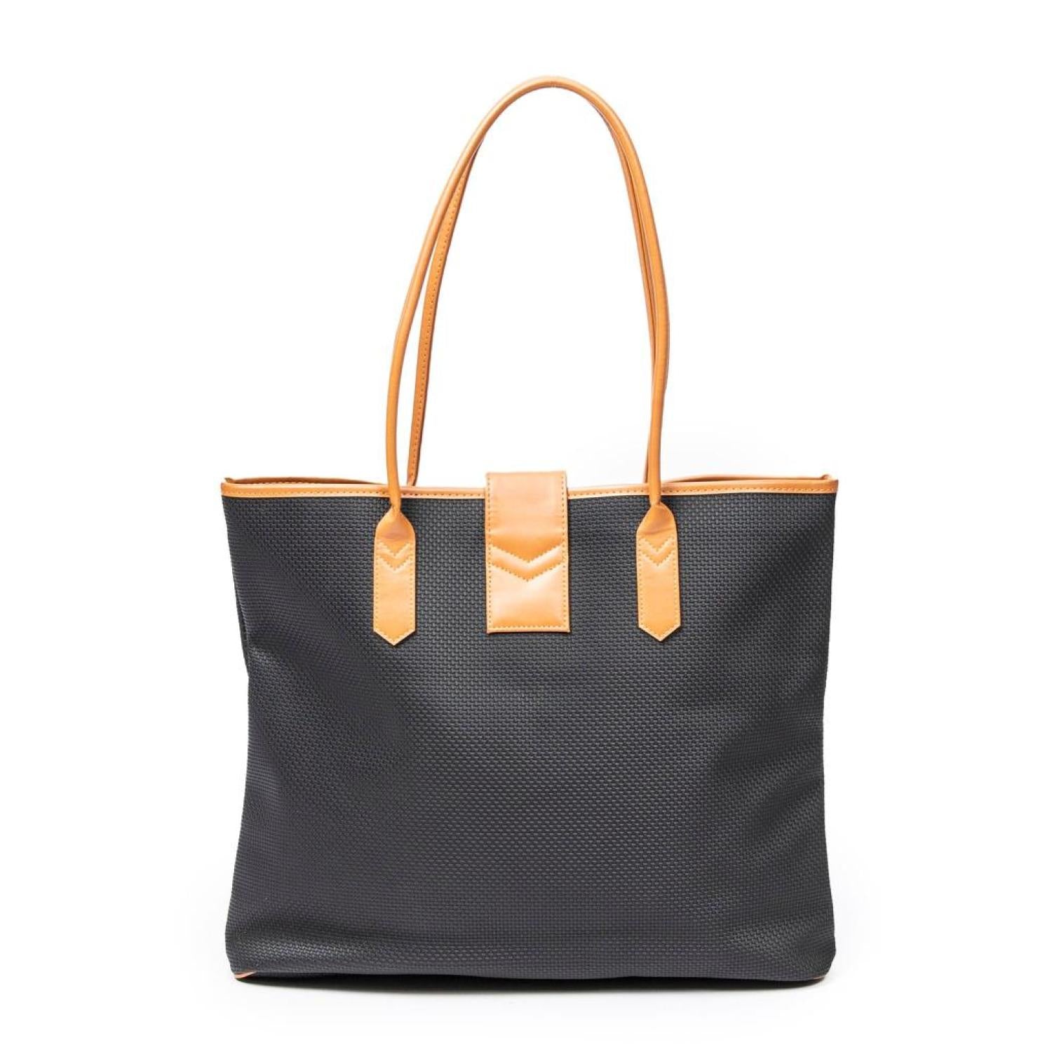 Yves Saint Laurent Shoulder Bag in Navy/Brown Woven Coated Canvas and Gold hardware. Dimensions - 40*35*7cm. Serial number - None. Inclusions - None.
