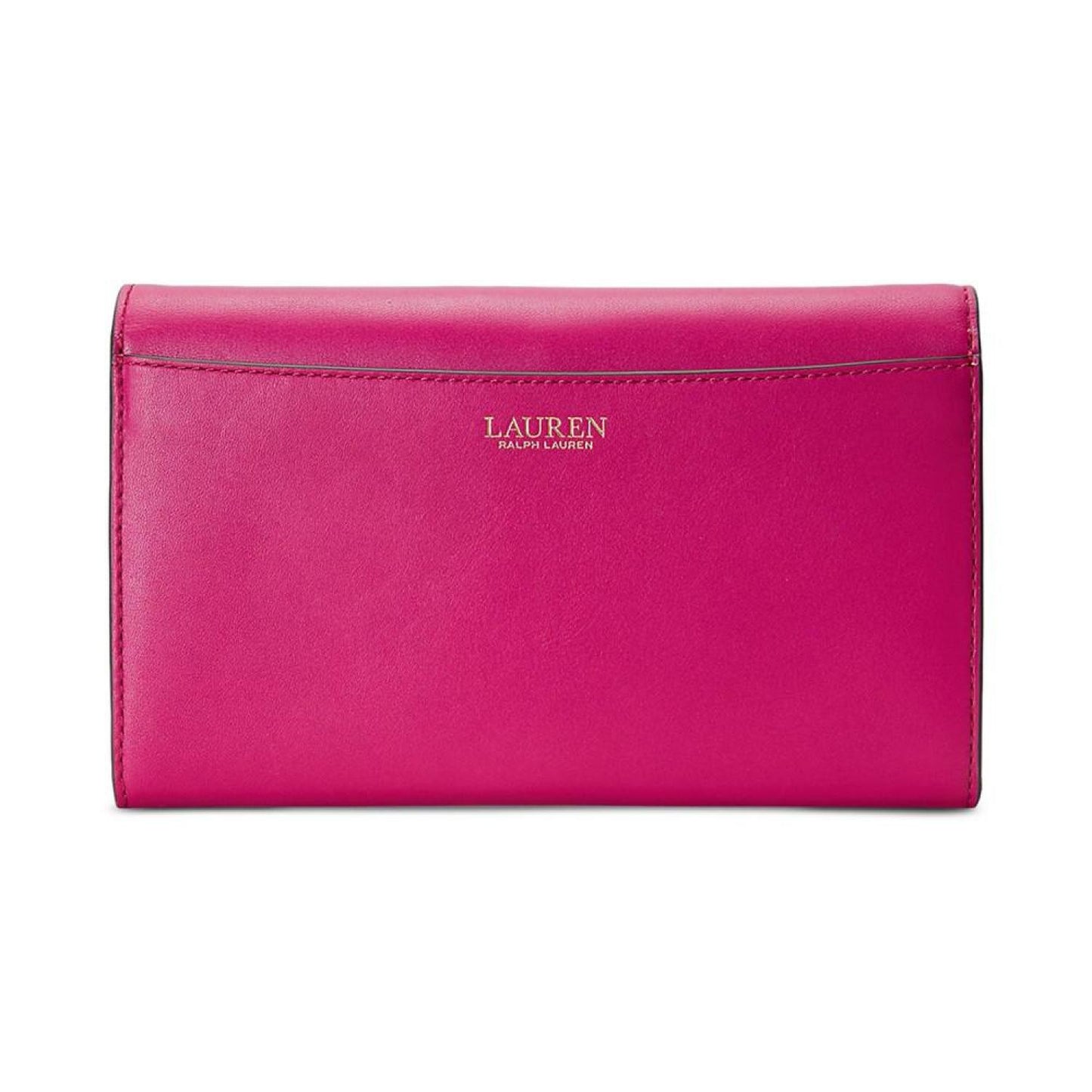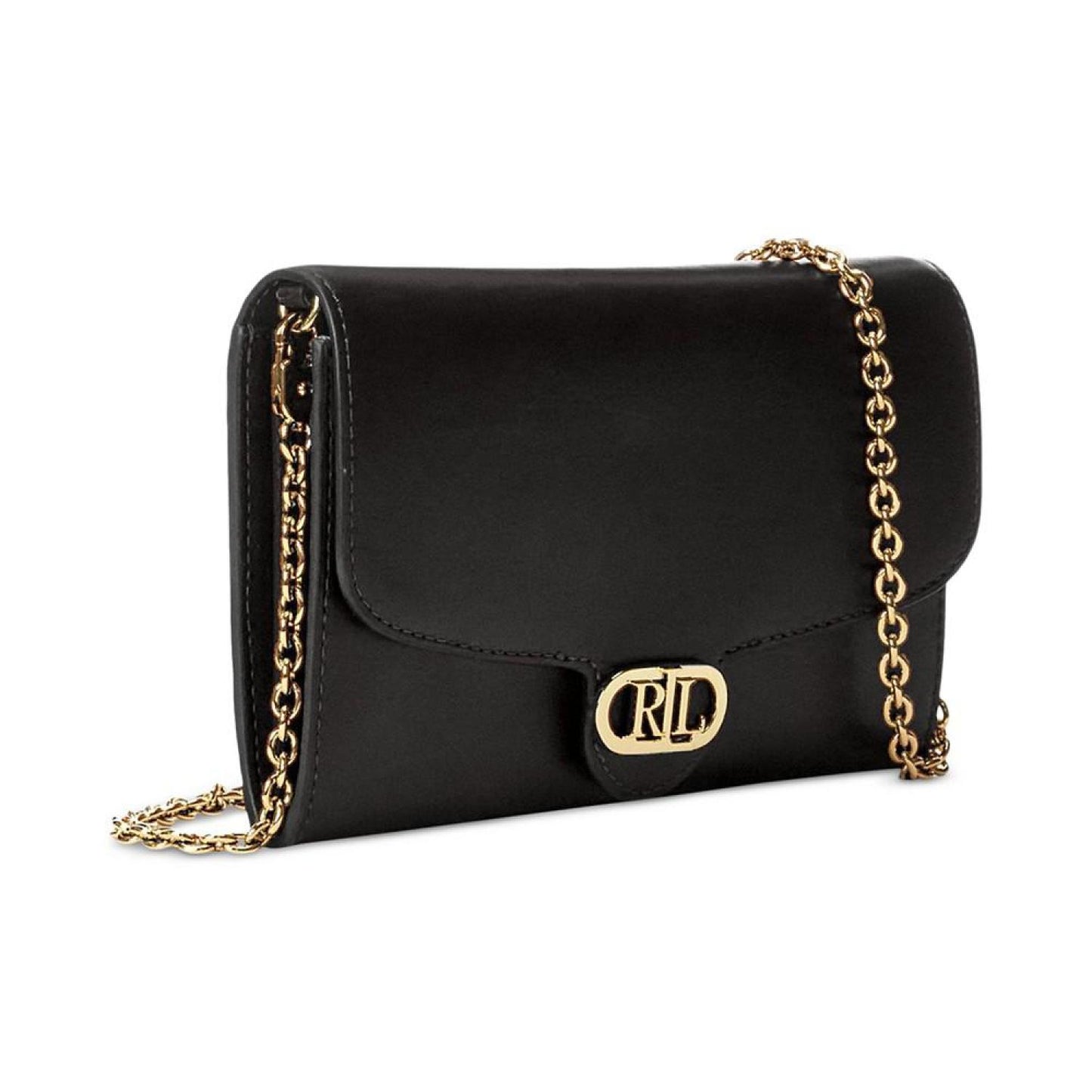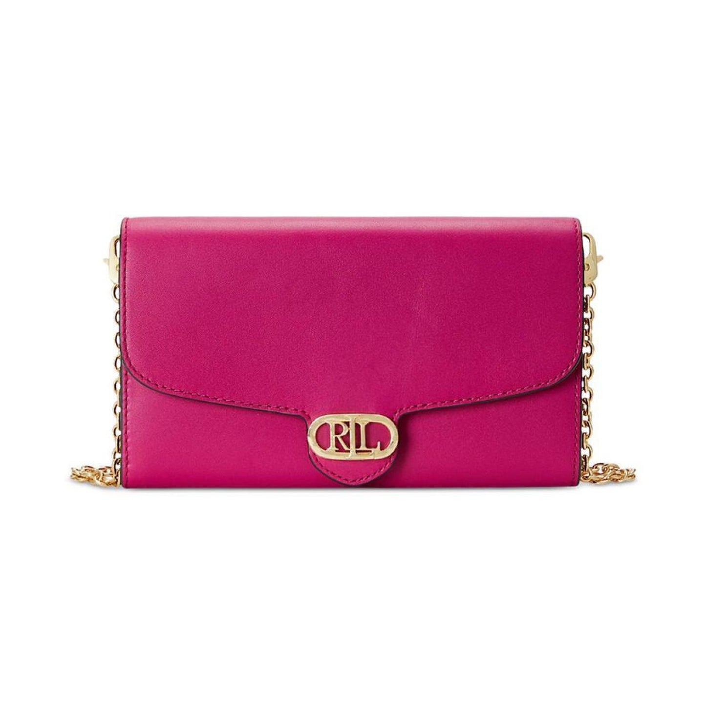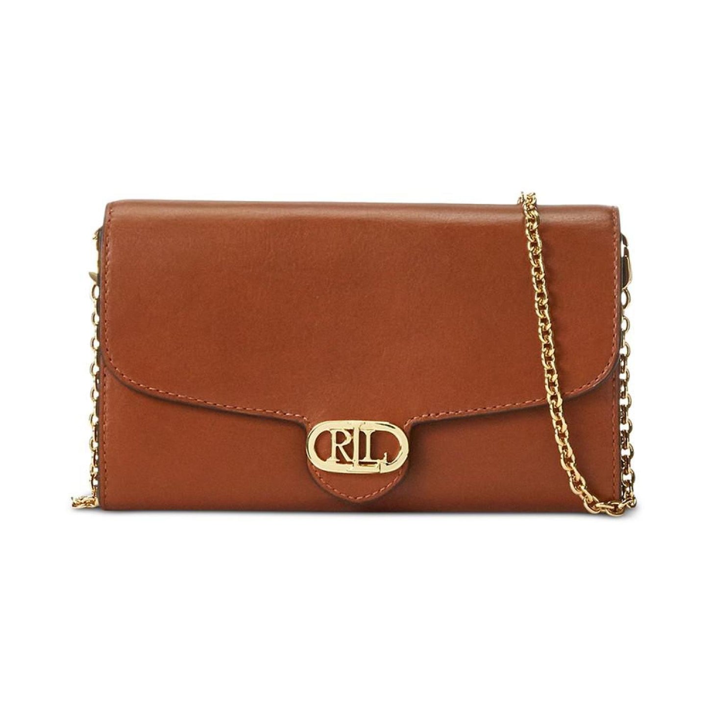 Crafted with supple full-grain leather and embellished with a modern chain strap, Ralph Lauren's Adair combines the convenience of a crossbody bag with the essential storage of a wallet thanks to its compact silhouette and array of pockets. It's adorned with polished "LRL" hardware for a signature Lauren Ralph Lauren touch. Small sized bag; 8"W x 5"H x 1-1/4"D (width is measured across the bottom of the bag) Silhouette is based off 5'9" model 20"L removable crossbody strap Magnetic snap closure Gold-tone hardware & exterior back slip pocket Interior center zip pocket, 8 card slots & slip pockets Dust bag included Leather; lining: polyester Professional leather clean Imported