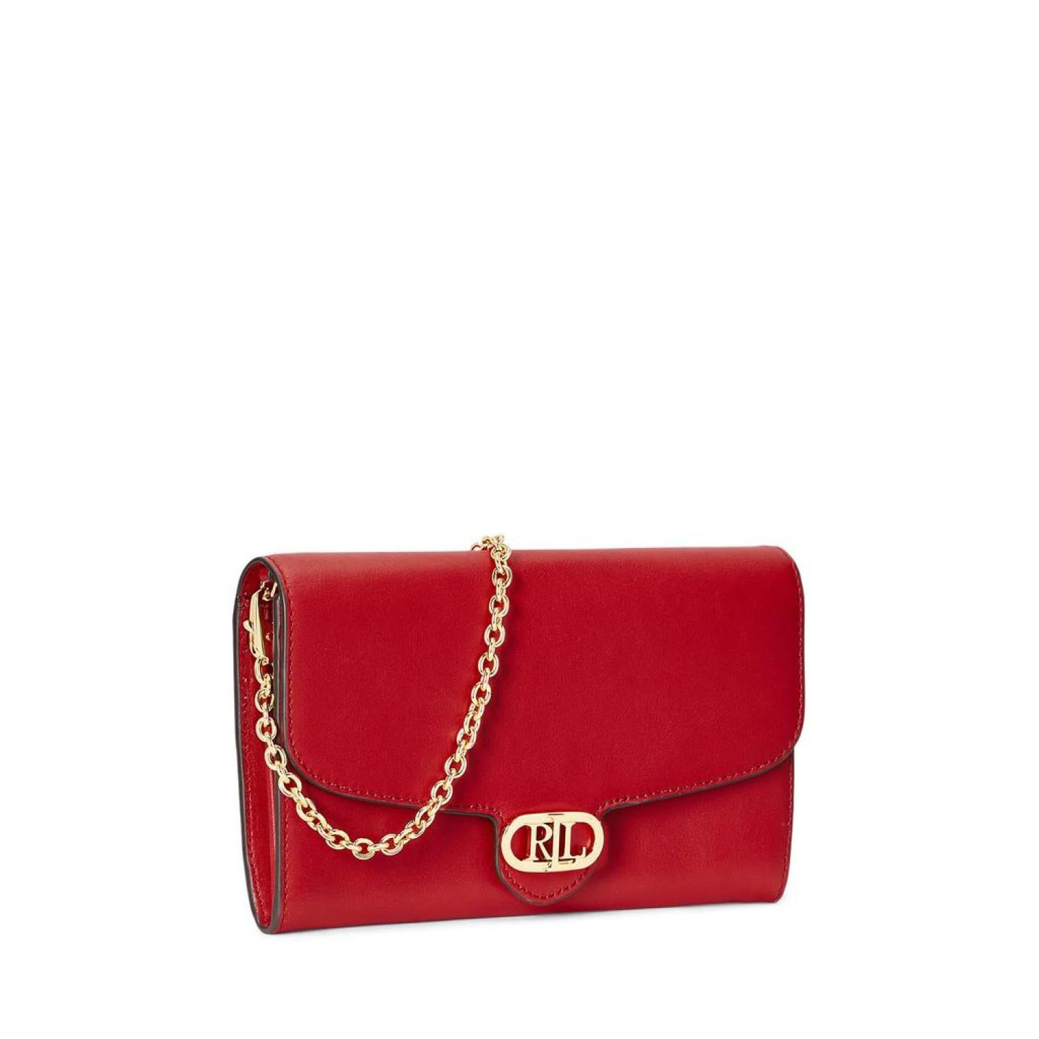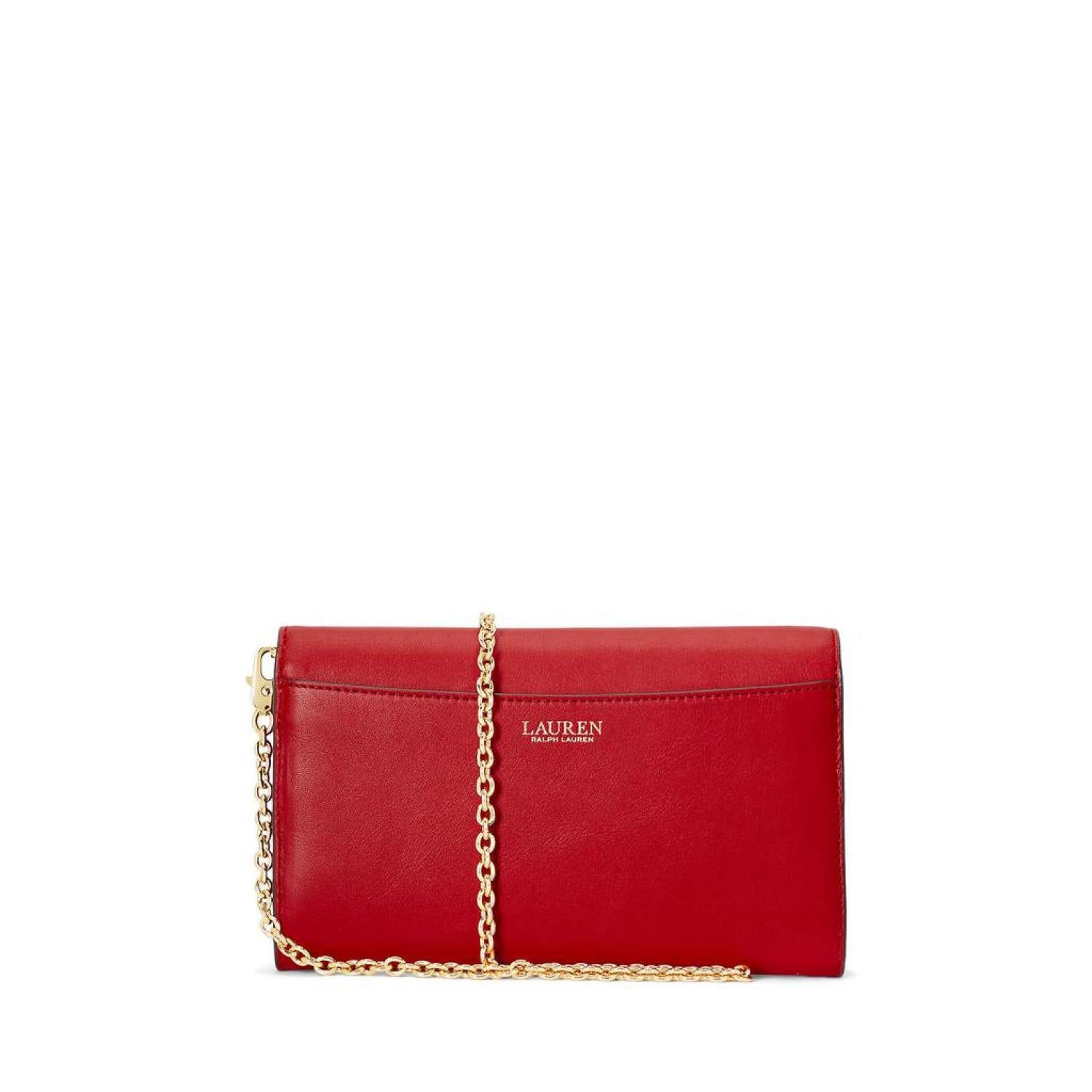 Radiant and attention-catching, the LAUREN Ralph Lauren® Leather Medium Adair Crossbody bag crafted from polyester lining. This handbag features removable crossbody strap, magnetic  snap closure, and is adorned with gold-tone brand detailing hardware on the front.