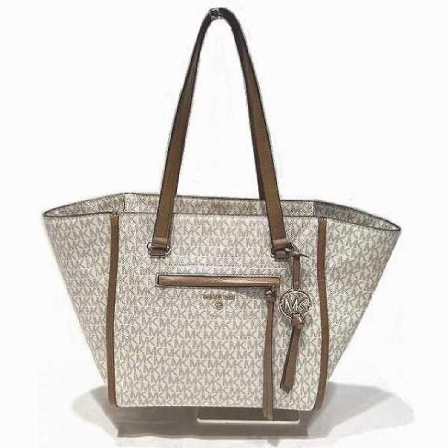 Brand - Michael Kors, Color - Beige, Brown, Material - Leather, Dimensions - 27cm x 48cm x 12cm / 10.62'' x 18.89'' x 4.72'', Condition - Rank B. Rank B Used - Traces of usage, damages / dirt can be seen but it is still in acceptable condition for continued usage. Before purchasing, please refer to the images for the exact condition of the item. Before purchasing, please refer to the images of the accessories included with the item. Damage Ranking - Slight, Moderate, Insignificant Size - One Size