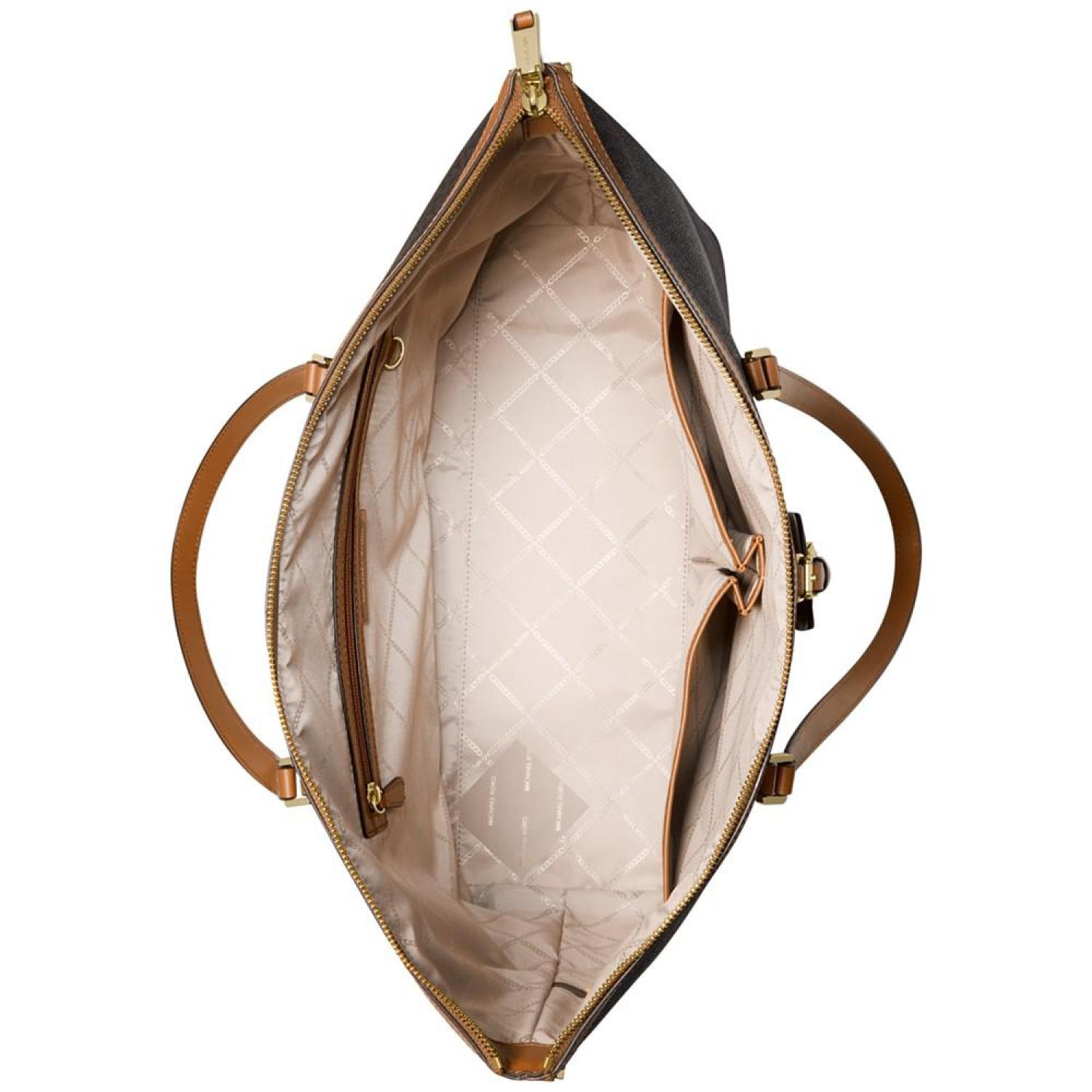 • Travel in style with the Heritage Extra Large Travel Sleeve Tote by MICHAEL Michael Kors. The array of pockets will keep your essentials easily accessible while the zip top closure keeps them safe and secure.