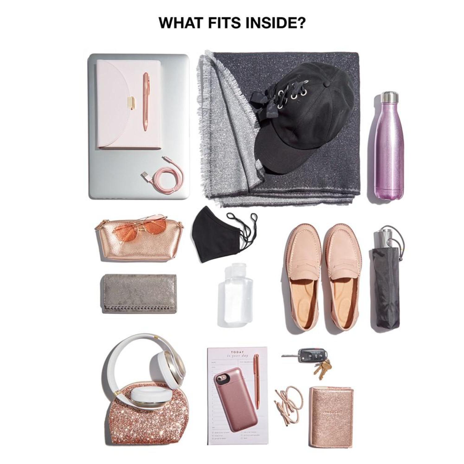 Silver-tone or gold-tone hardware, varies by color & exterior snap pocket
