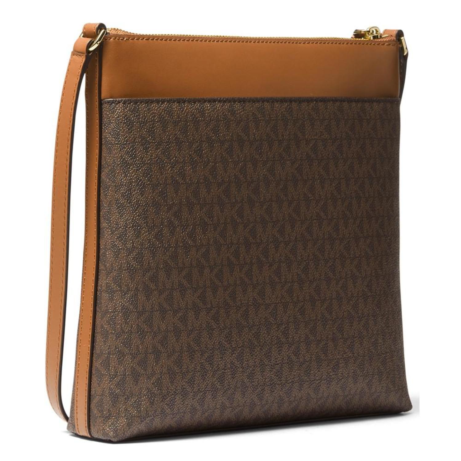 Jet Set Charm Large NS Flat Crossbody 10" W x 10.25" H x 1.5" D Small sized wallet Material: MK Sig Semi Lux SM; Trim: Soft King Leather; Lining: Polyester Top Zip Closure Interior:1 Back Slip Pocket, 6 Front Credit Card Pockets Exterior:1 Back Slip Pocket, 1 Front Zip Pocket, 1 Front Slip Pocket Gold-tone hardware 0.54 lbs 69% Pvc, 17% Polyester, 13% Cotton, 1% Pu Wipe clean Imported
