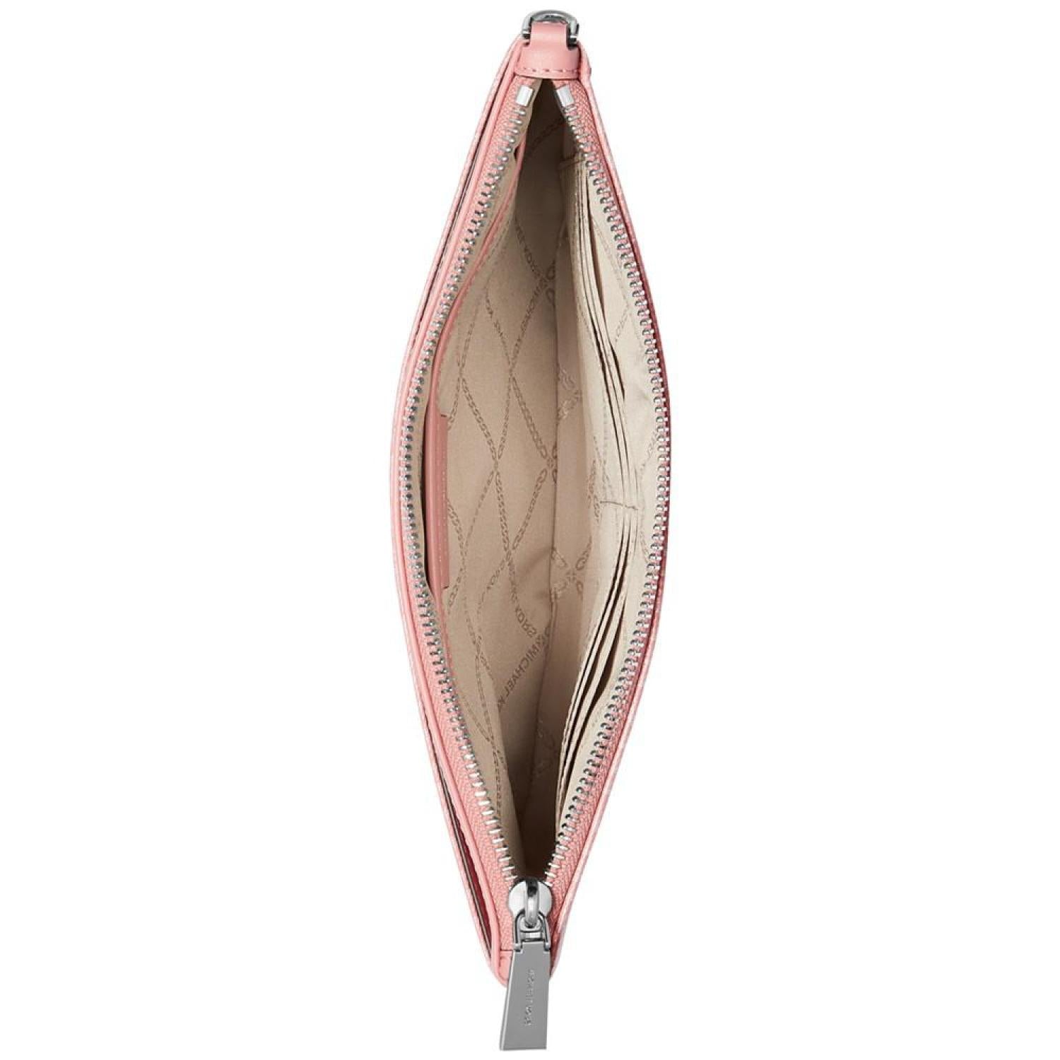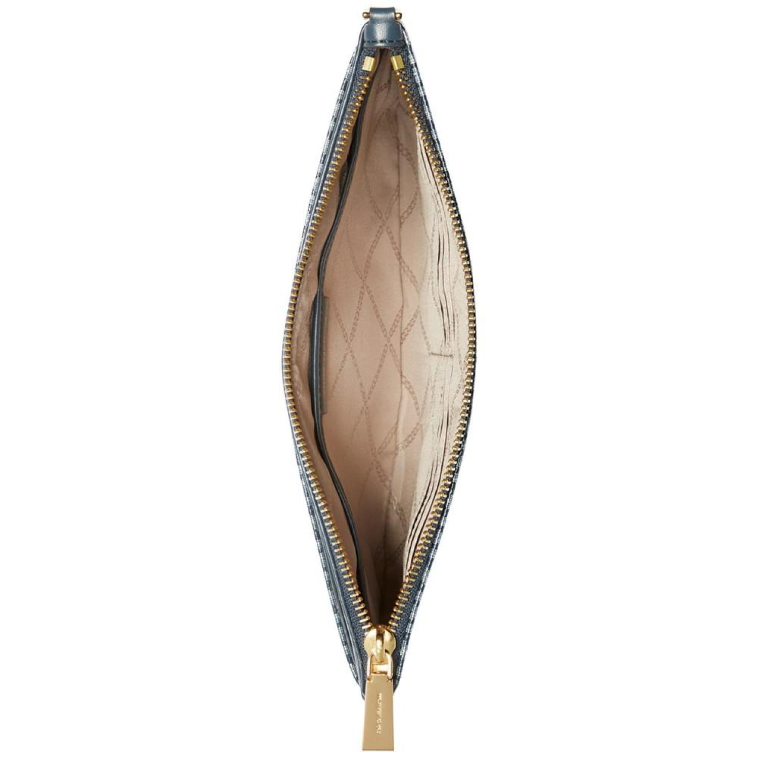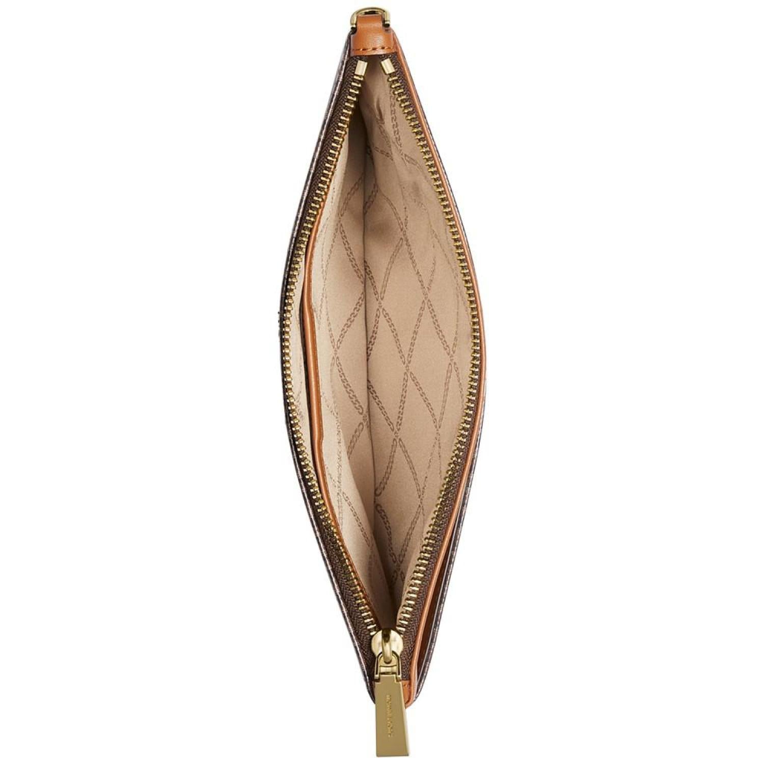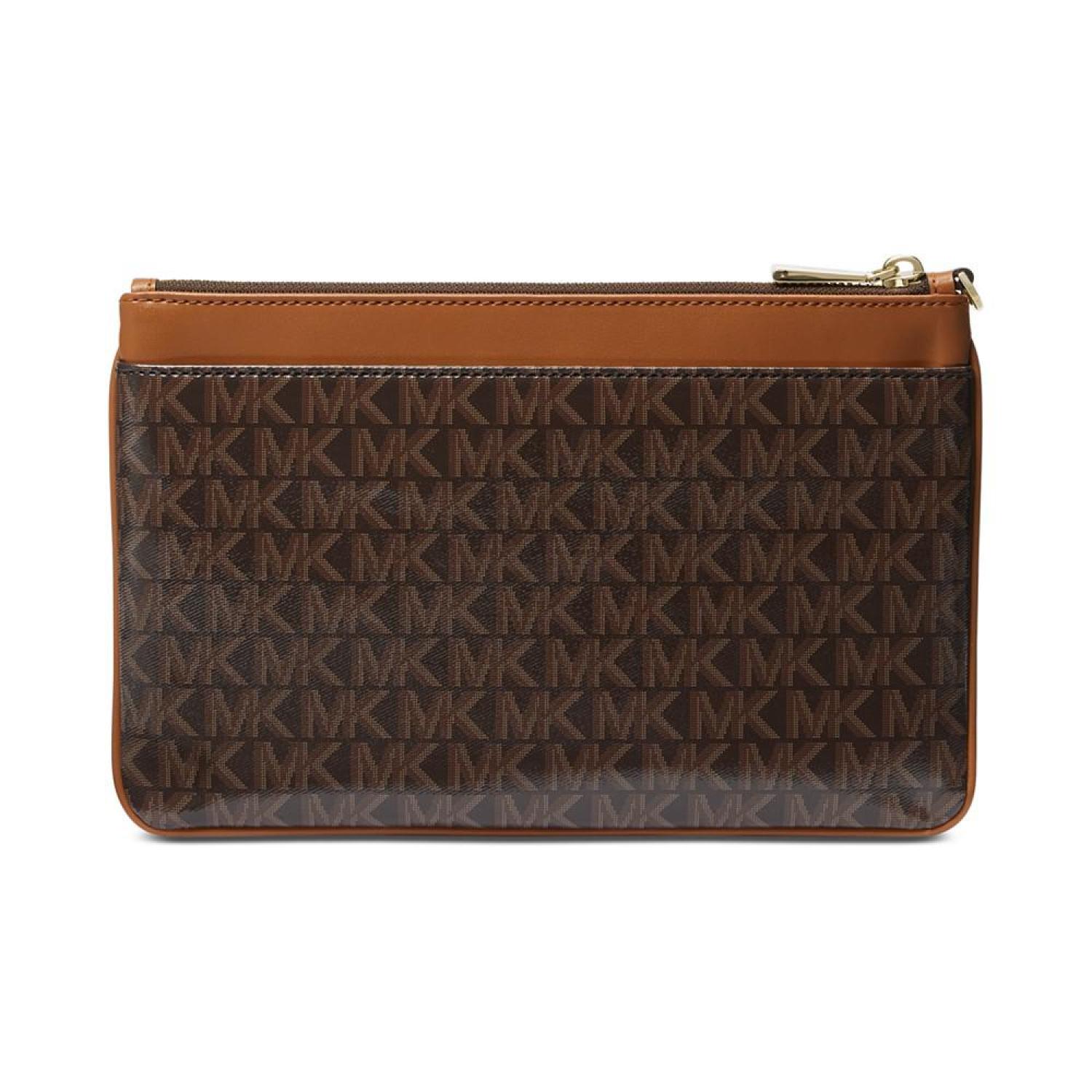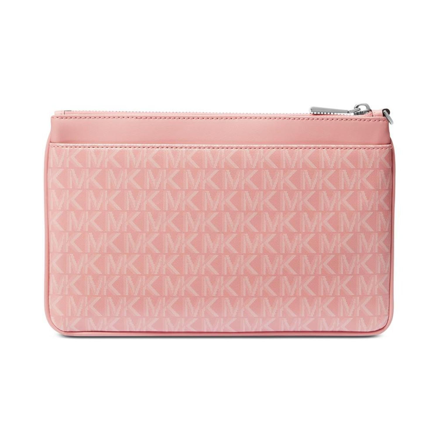 Lightweight and sophisticated, the Jet Set Charm Monogram Zippered Wristlet by MICHAEL Michael Kors is perfect for just the essentials. 10-1/4"W x 6-3/4"H x 3/4"D; 0.48 lbs. approx. weight 7-1/2"L wrist strap Zippered closure Hardware tone varies by color & exterior slip pocket Interior slip pocket & 6 card slots Cotton, polyvinylchloride; lining: polyester; trim: polyurethane, cotton, polyester Spot clean Imported