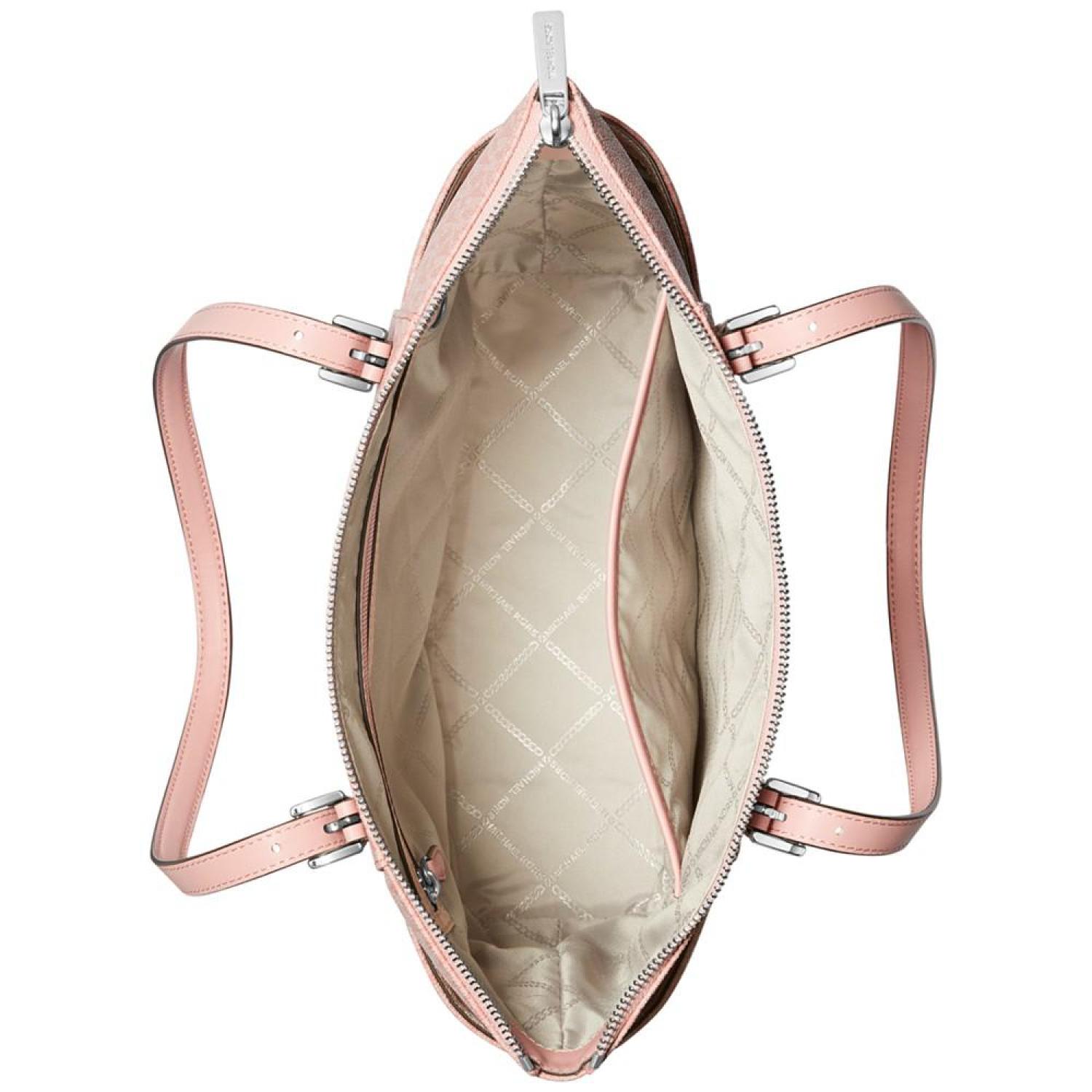 • Contrast slip pockets further define the classic-chic style of an upright and well-organized Michael Michael Kors tote.