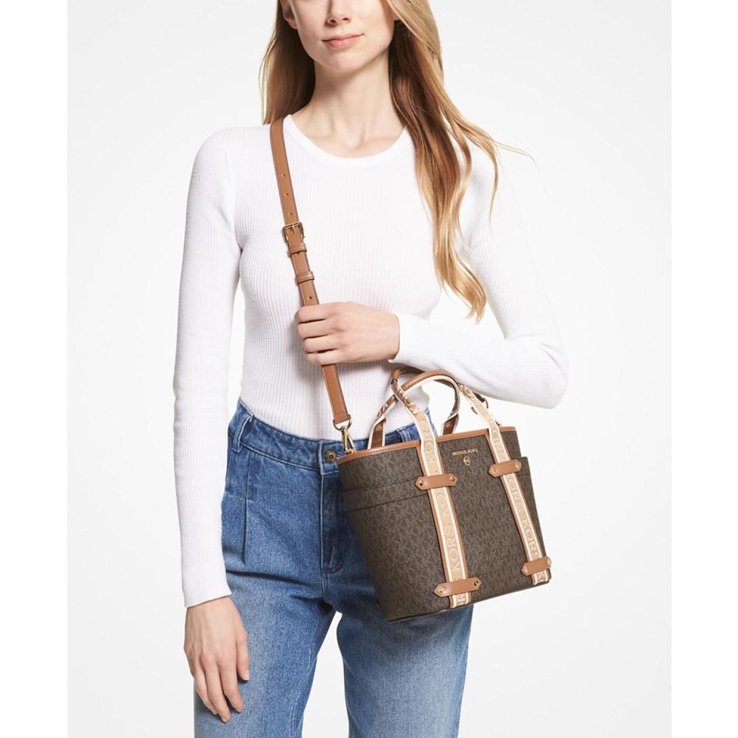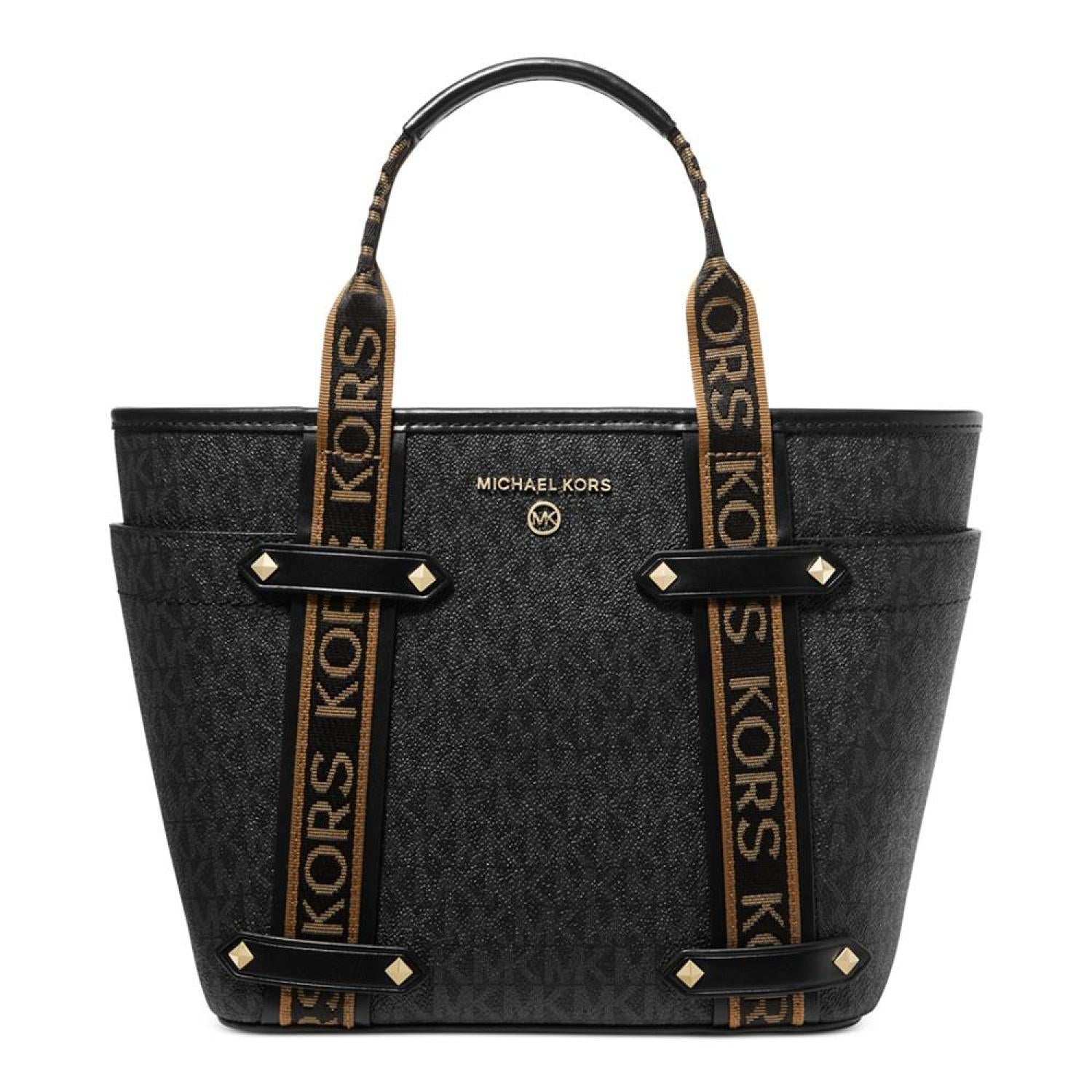 • A modern spin on classic elegance, the Signature Logo Maeve Convertible Open Tote by MICHAEL Michael Kors is sure to take your style to the next level.