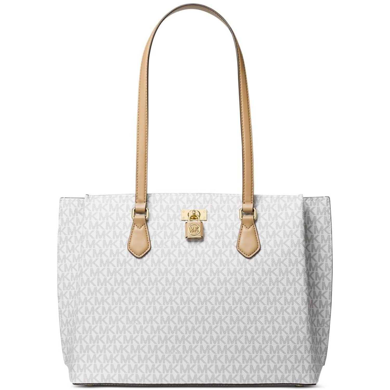 • Classic style with an amply spaced interior, the Ruby Signature Logo Monogram Large Zip-Top Tote by MICHAEL Michael Kors is a perfect companion for everyday sophistication.