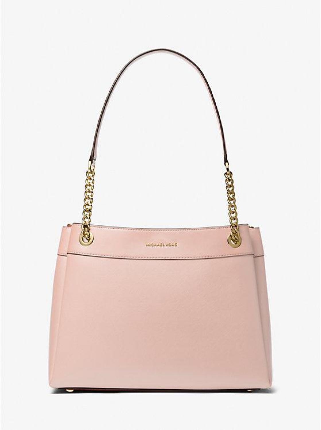 • Embrace everyday glamour with our faux leather Lori bag, designed in a classic tote silhouette. The top zip fastening keeps your essentials safe, while two adjoining snap pockets offer added storage. Every detail is carefully considered, from the chain-link top handle to the protective feet at the base.