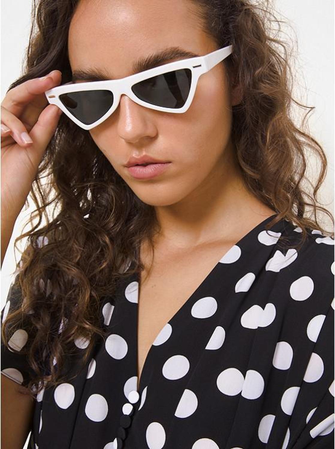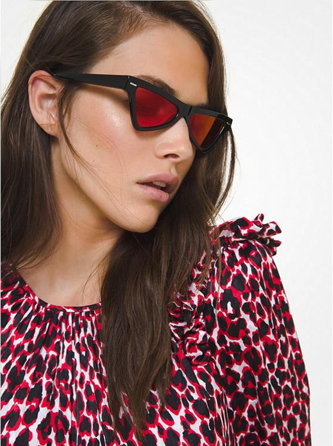 • Our Maddox sunglasses will add a modern touch to any look. Designed in a fashion-forward geometric silhouette, these metal frames feature a sleek brow bar that will complement myriad face shapes.