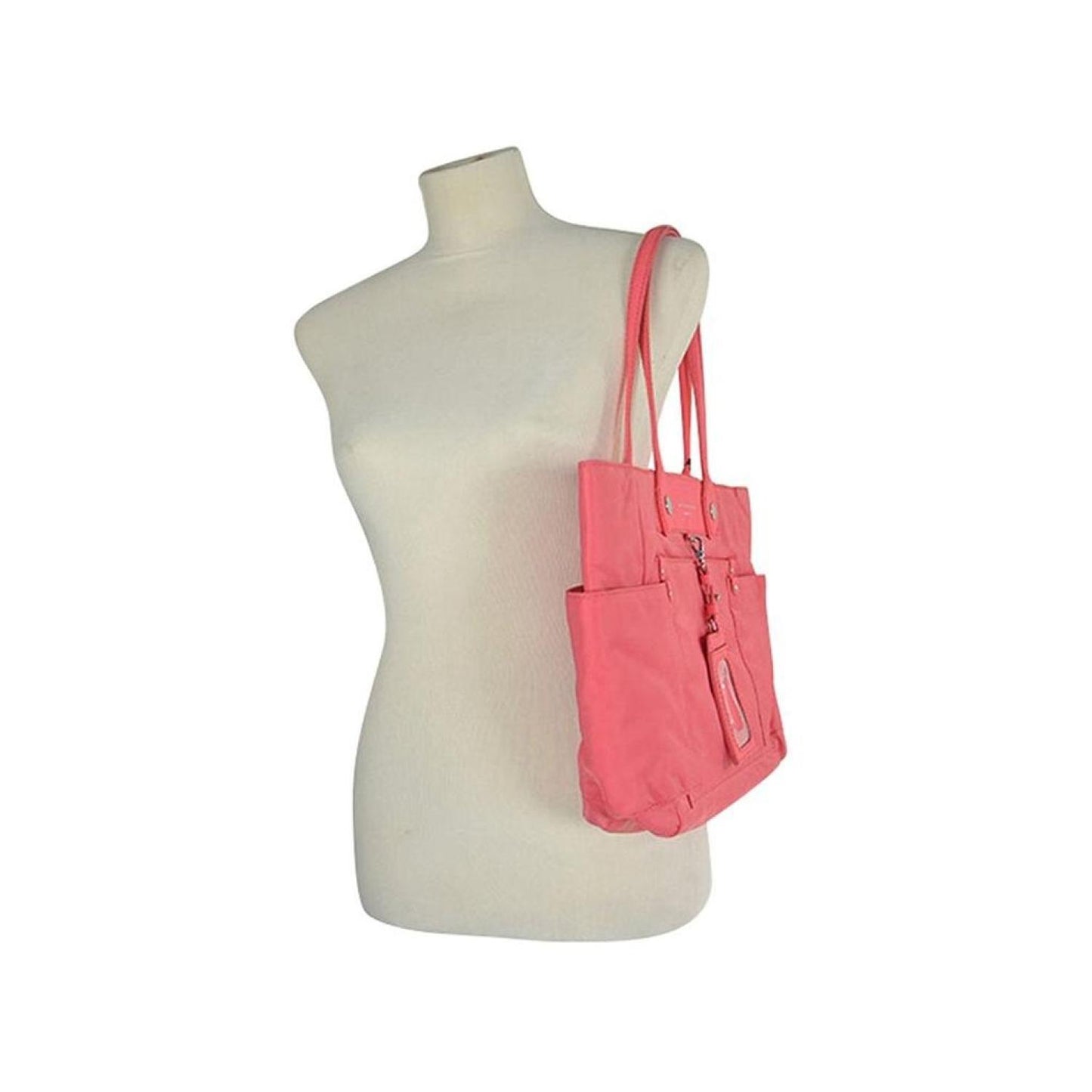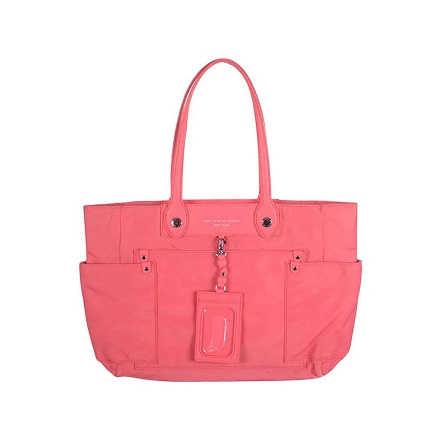 • MARC by Marc Jacobs Nylon tote with hang tag detail; Top zip closure; Golden zipper hardware Leather shoulder strap of 9 Inches drop; Open front pocket; logo ornament Inside, hanging zip pocket and open pocket with magnetic closure Measurements - Length - 11.5 x Height - 7.5 x Width - 4 Inches Comes with original tags