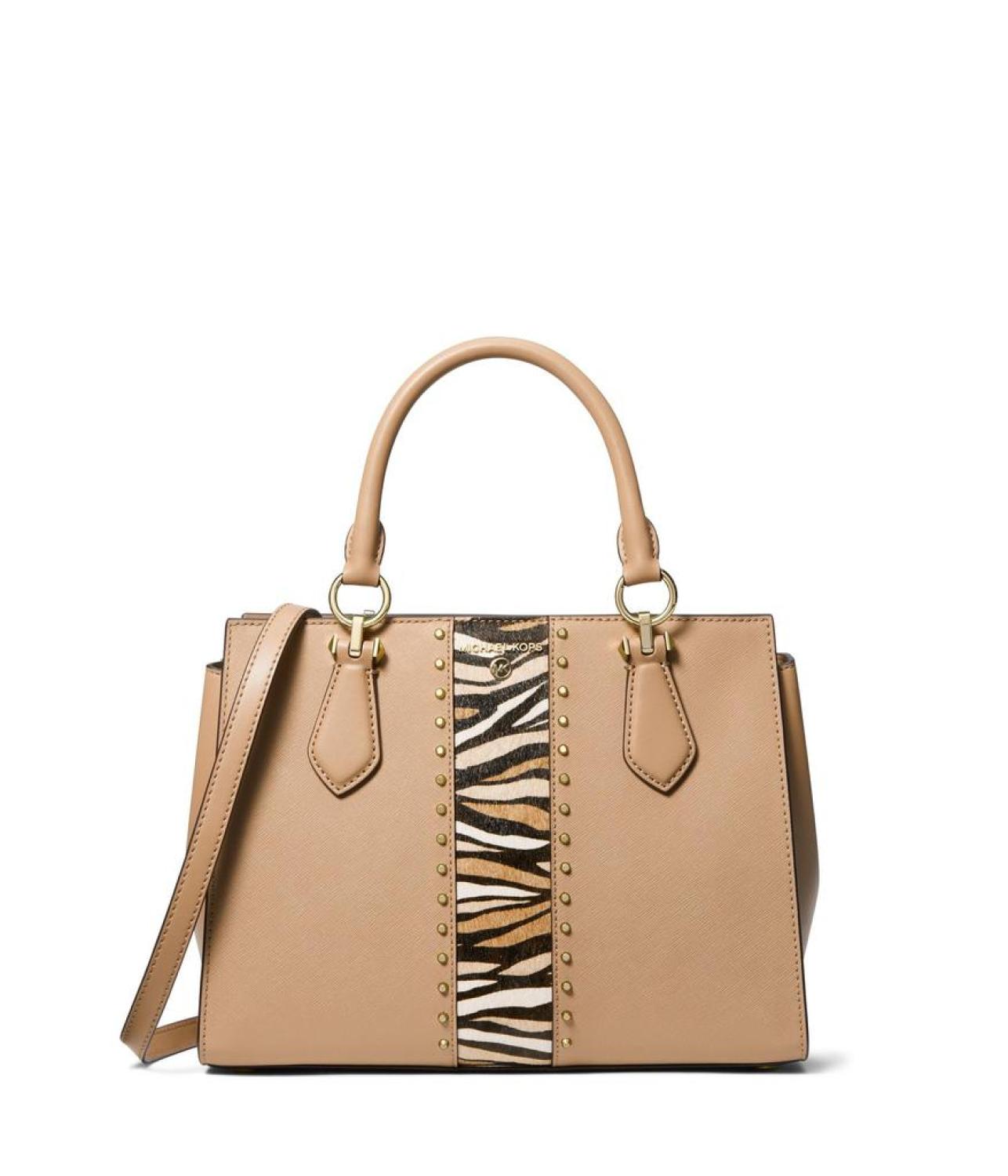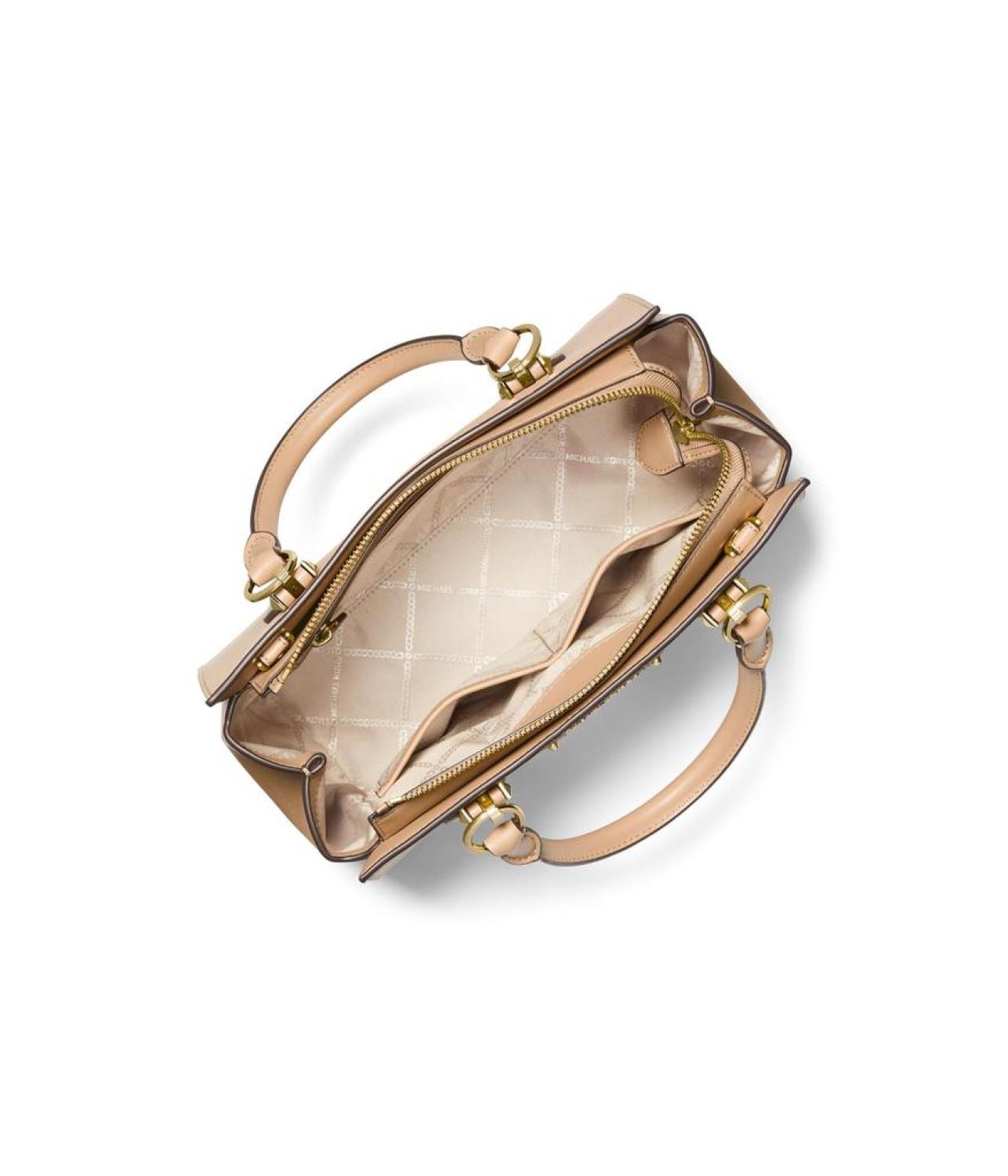 • Travel light wearing the MICHAEL Michael Kors® Marilyn Medium Satchel. The handle on the top offers a secure fit. The adjustable shoulder strap also adds to the structure and makes it easy to carry as a crossbody.