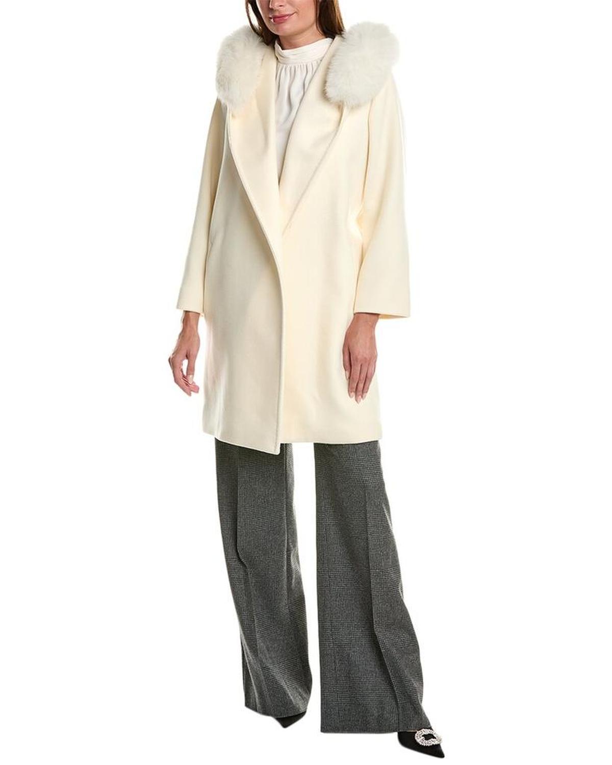 Elevate your outerwear collection with the Max Mara Studio Mango Wool Coat. This stunning coat features a luxurious fur-trimmed hood, two front pockets, and a belted waist for a flattering silhouette. The single-button closure adds a sophisticated touch, while the 100% virgin wool construction makes it a medium-weight option for chilly days. The lining is made of 100% viscose, and the fur trim is crafted from Fox Fur sourced from Finland. This coat measures approximately 37 inches from shoulder to hem and is designed for a model who is 5'10' and wearing a size 2. Treat yourself to this imported statement piece and clean it by a fur expert for long-lasting wear.