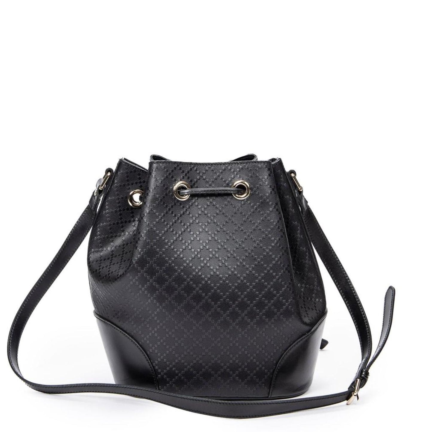 • Gucci Shoulder Bag in Black Diamante Coated Canvas and Gold hardware. Dimensions - 23,5*28*15cm. Serial number - 354228 200047. Inclusions - dustbag, booklet.