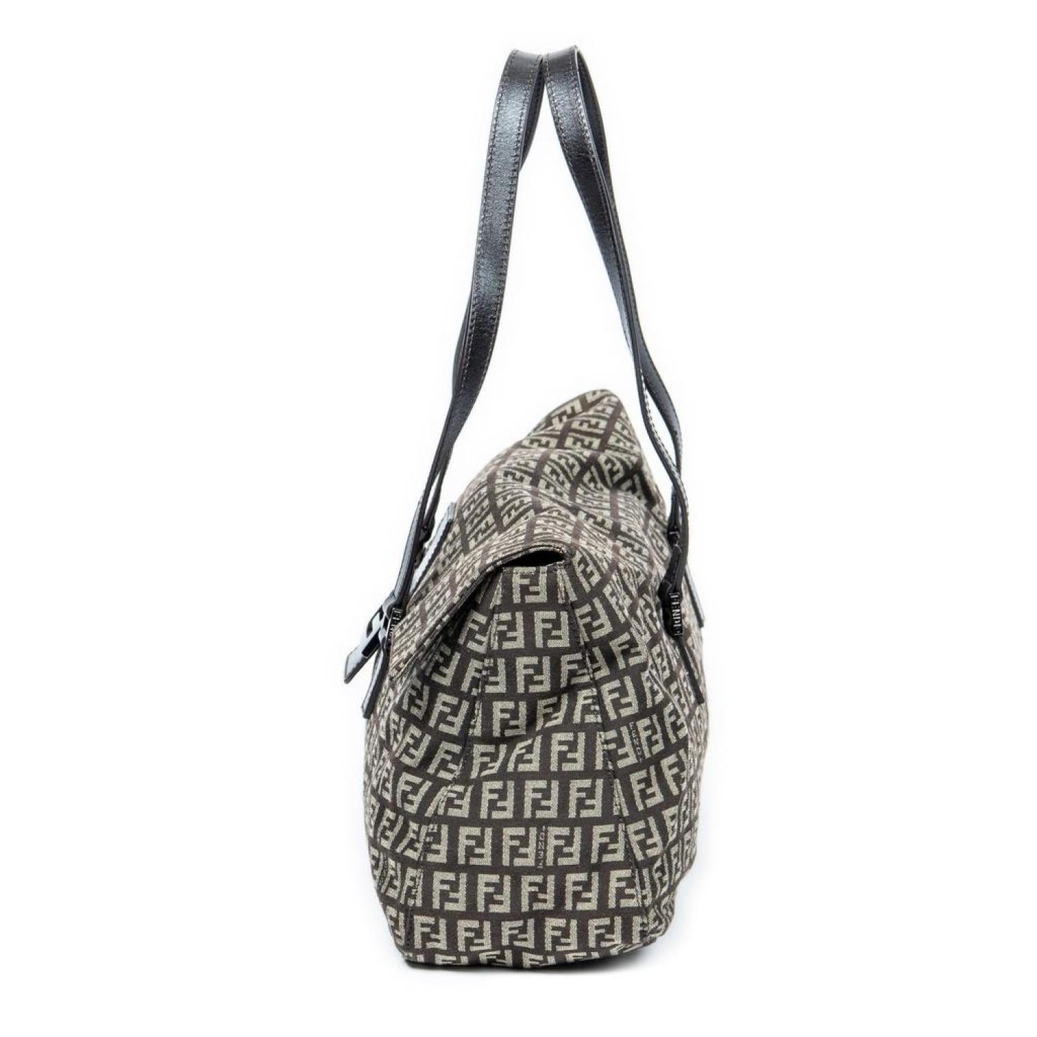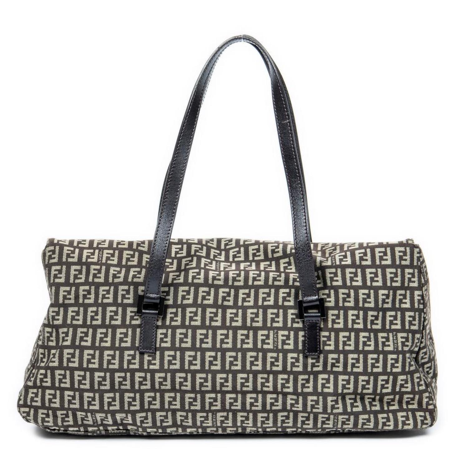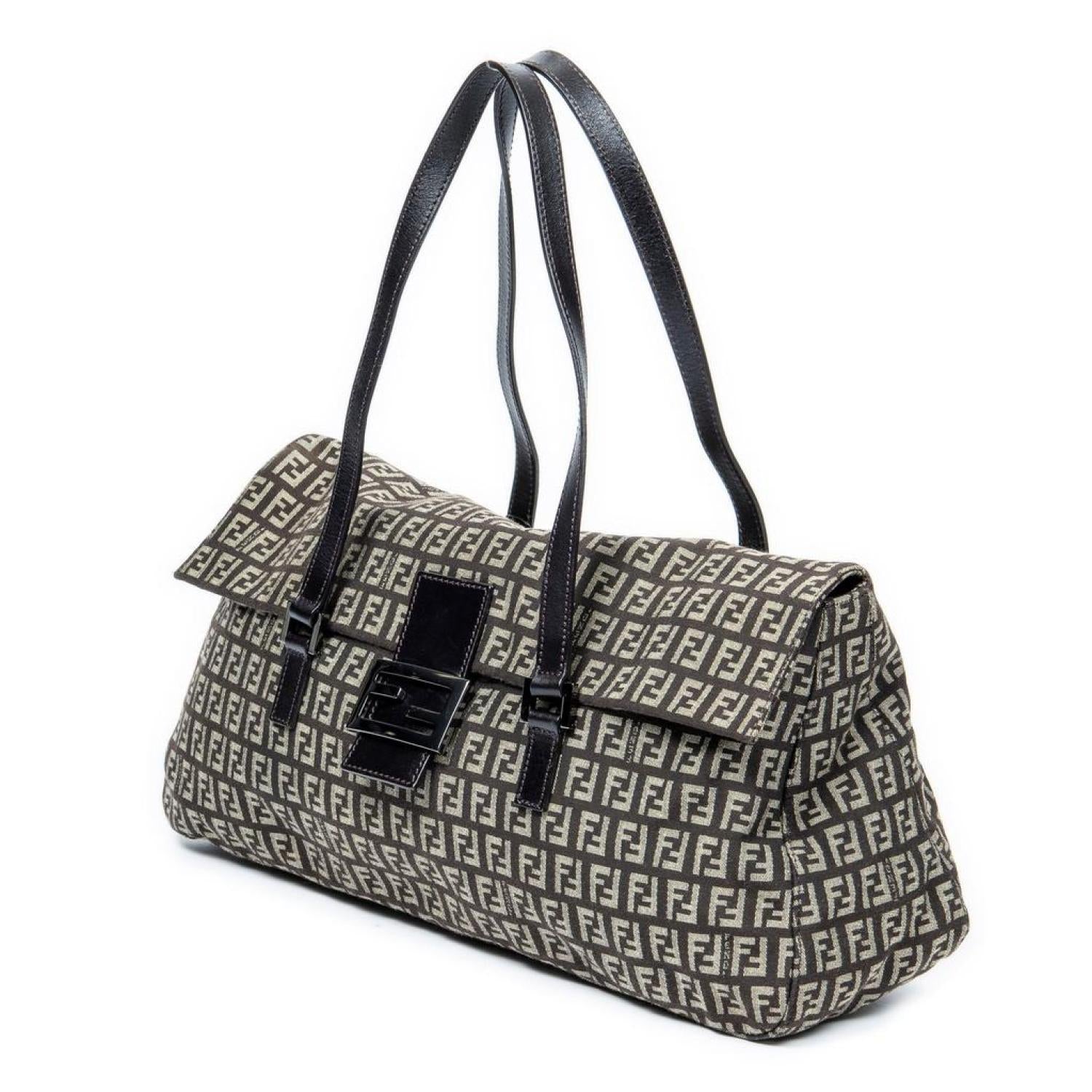 • Fendi Shoulder Bag in Brown/Beige Zucchino Canvas and Silver hardware. Dimensions - 40*20*12cm. Serial number - 2384-8BR327-JQ4-039. Inclusions - None.