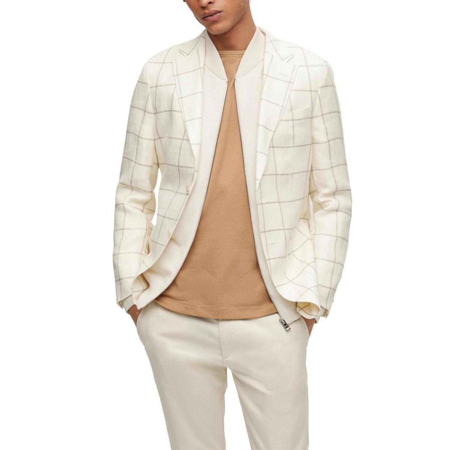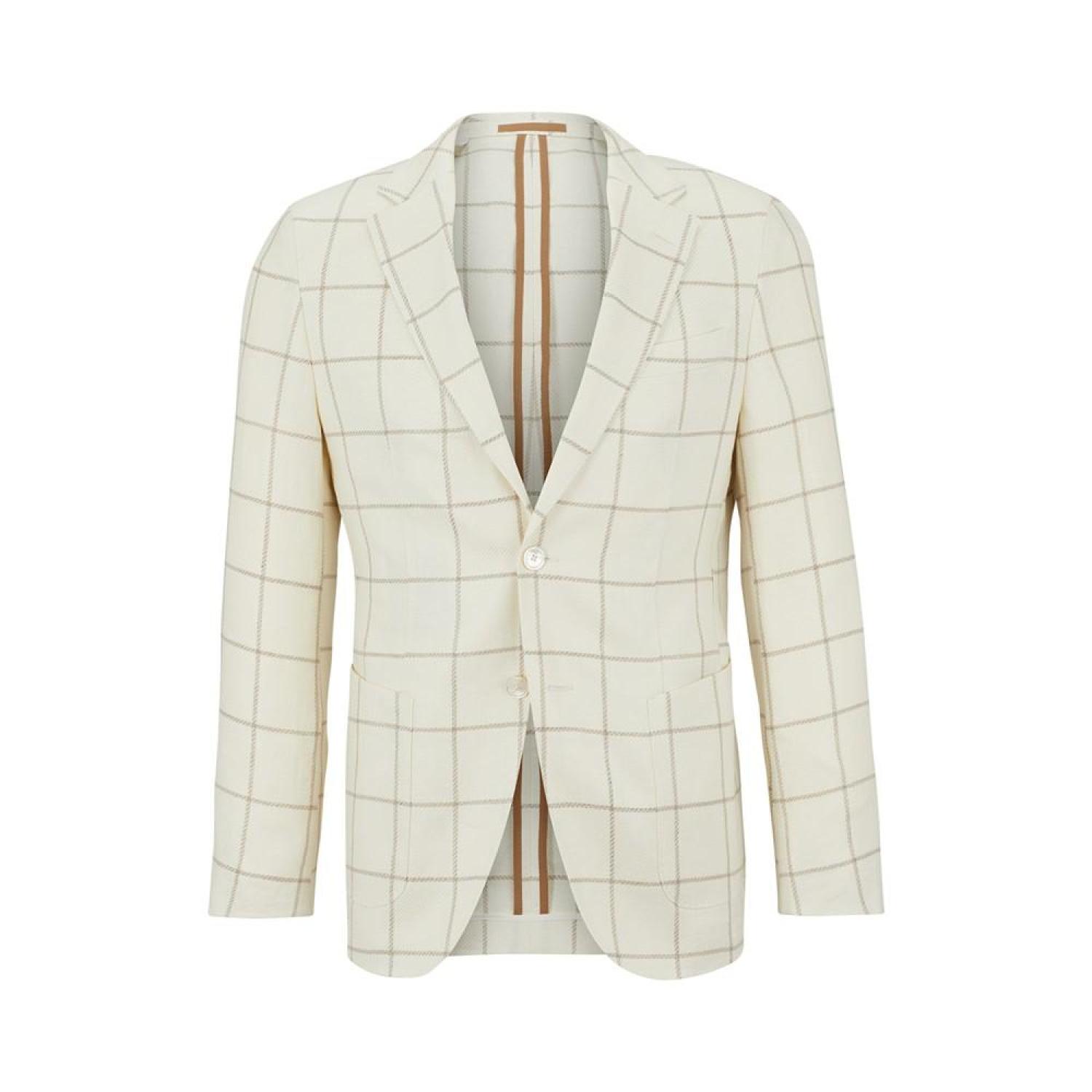 A slim-fitting jacket in linen blended with silk and woven with a modern check by BOSS menswear. This item is part of the BOSS tailored collection, signifying the very highest standards in design and craftsmanship.