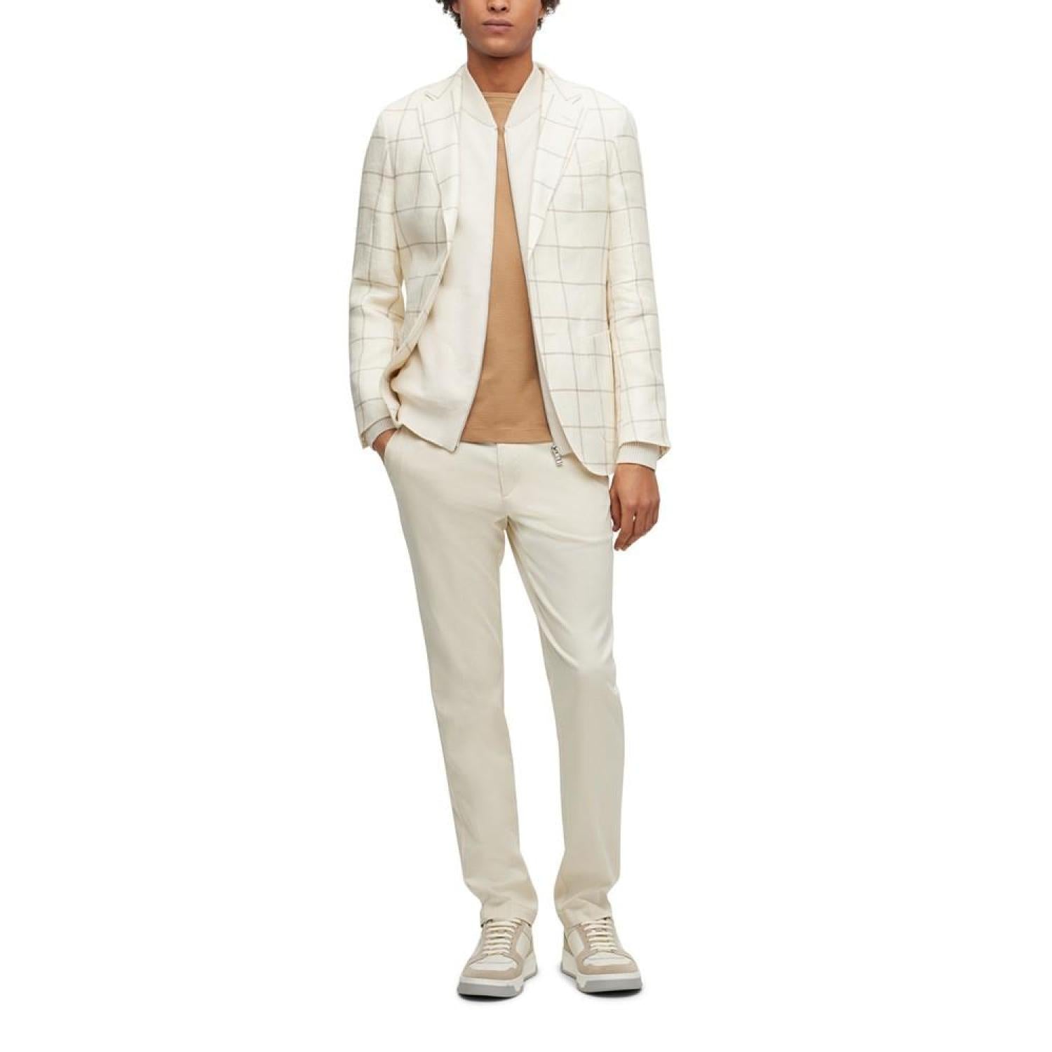 • A slim-fitting jacket in linen blended with silk and woven with a modern check by BOSS menswear. This item is part of the BOSS tailored collection, signifying the very highest standards in design and craftsmanship.