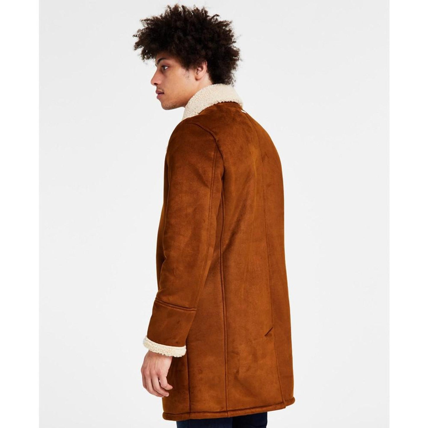 • Add a luxe layer of style and comfort to your cold-weather wardrobe with the warm faux shearling and timeless double-breasted design of this overcoat from GUESS.