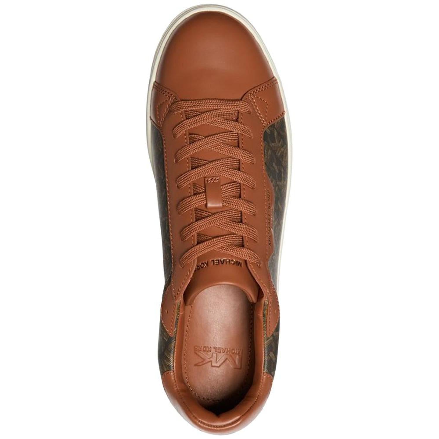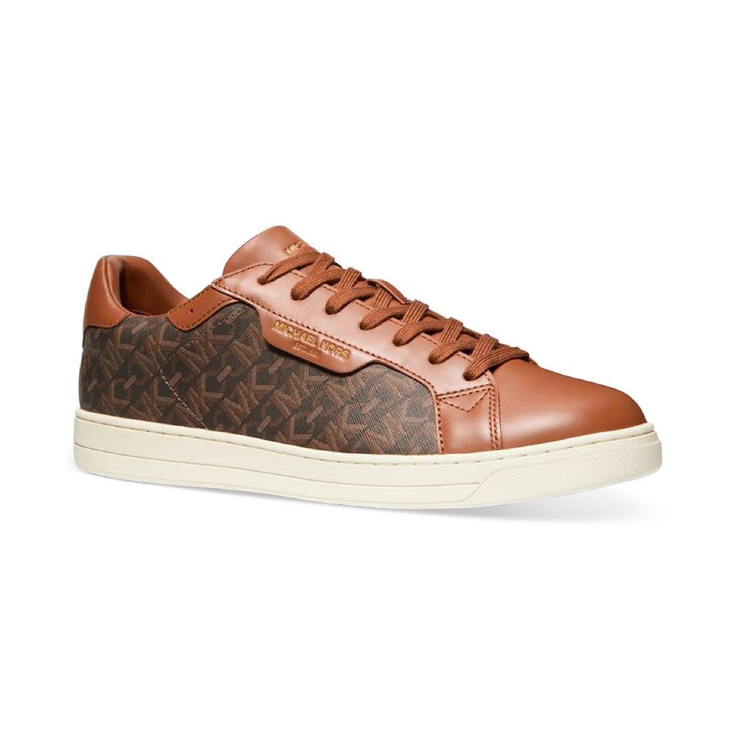 Designed with an MK logo panel that complements their smooth brown laces and upper, these sneakers from Michael Kors go great with chinos, jeans and everything in between. Round toe Lace closure Logo at side Polyurethane, cotton, rubber Spot clean Imported