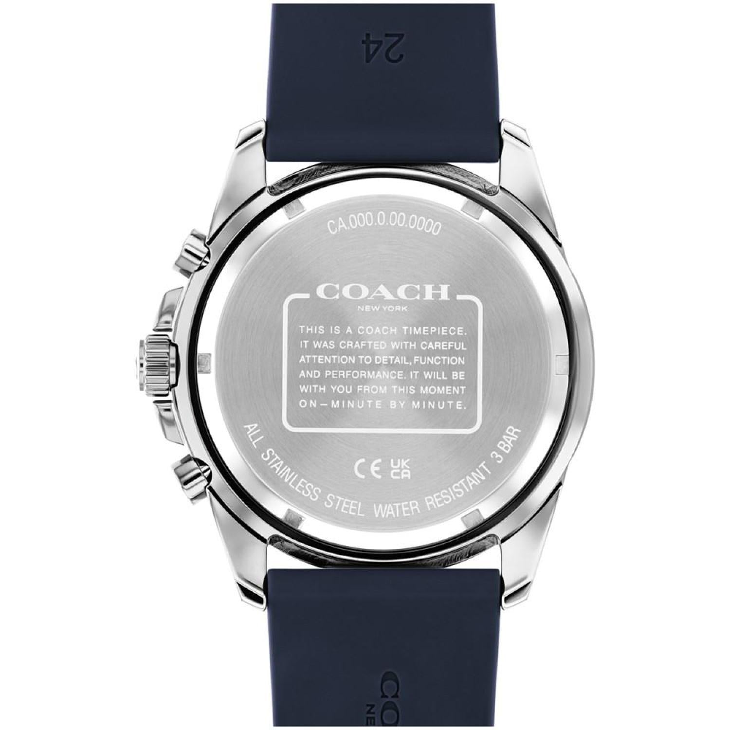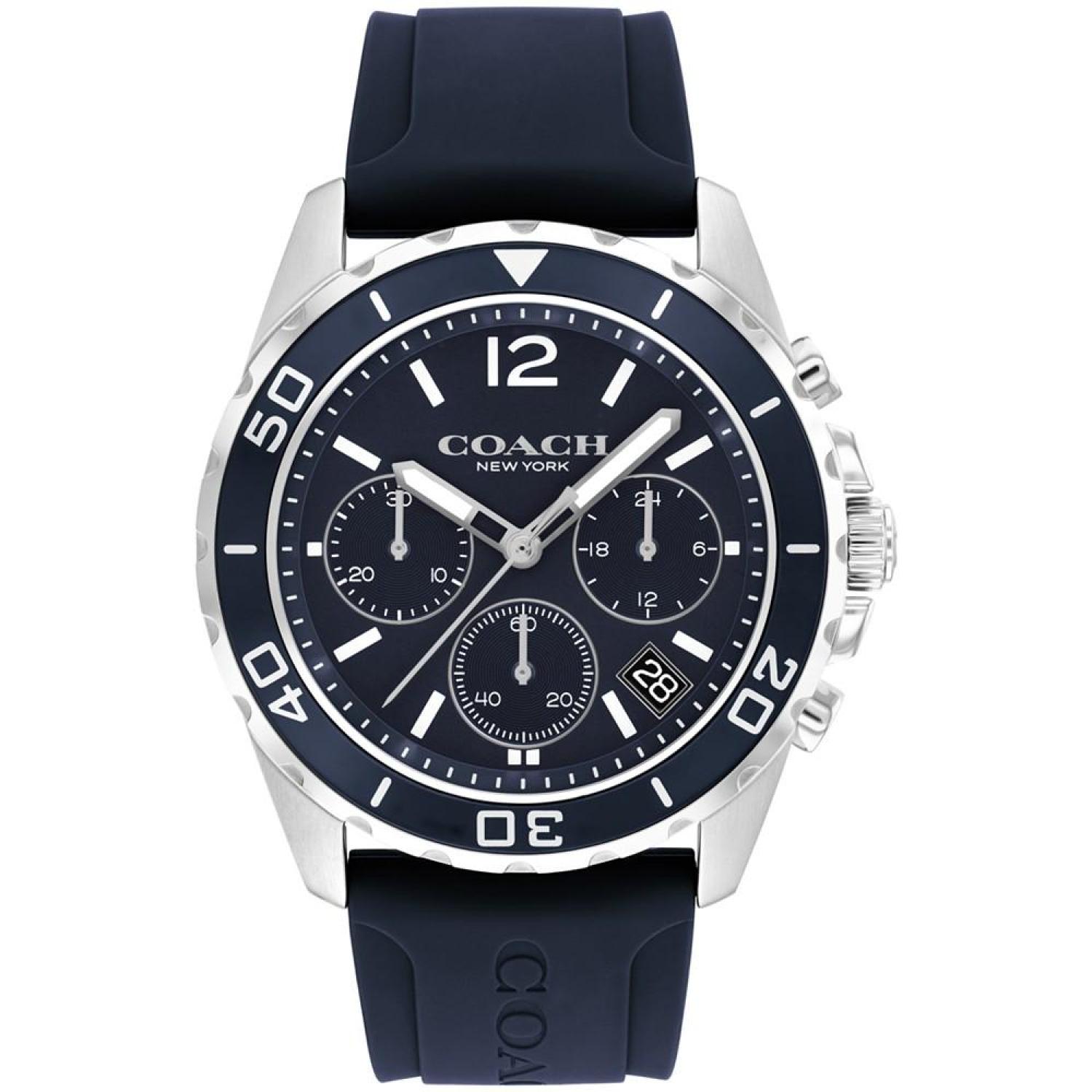 • Named for the scenic street in Brooklyn's ultra-hip Williamsburg neighborhood, the Kent watch is made for life-on-the-go. This stainless steel chronograph features a blue sunray dial with a date window and three subdials, marking seconds, minutes and hours. It's finished with a navy silicone rubber strap debossed with the COACH name. Style #14602641.