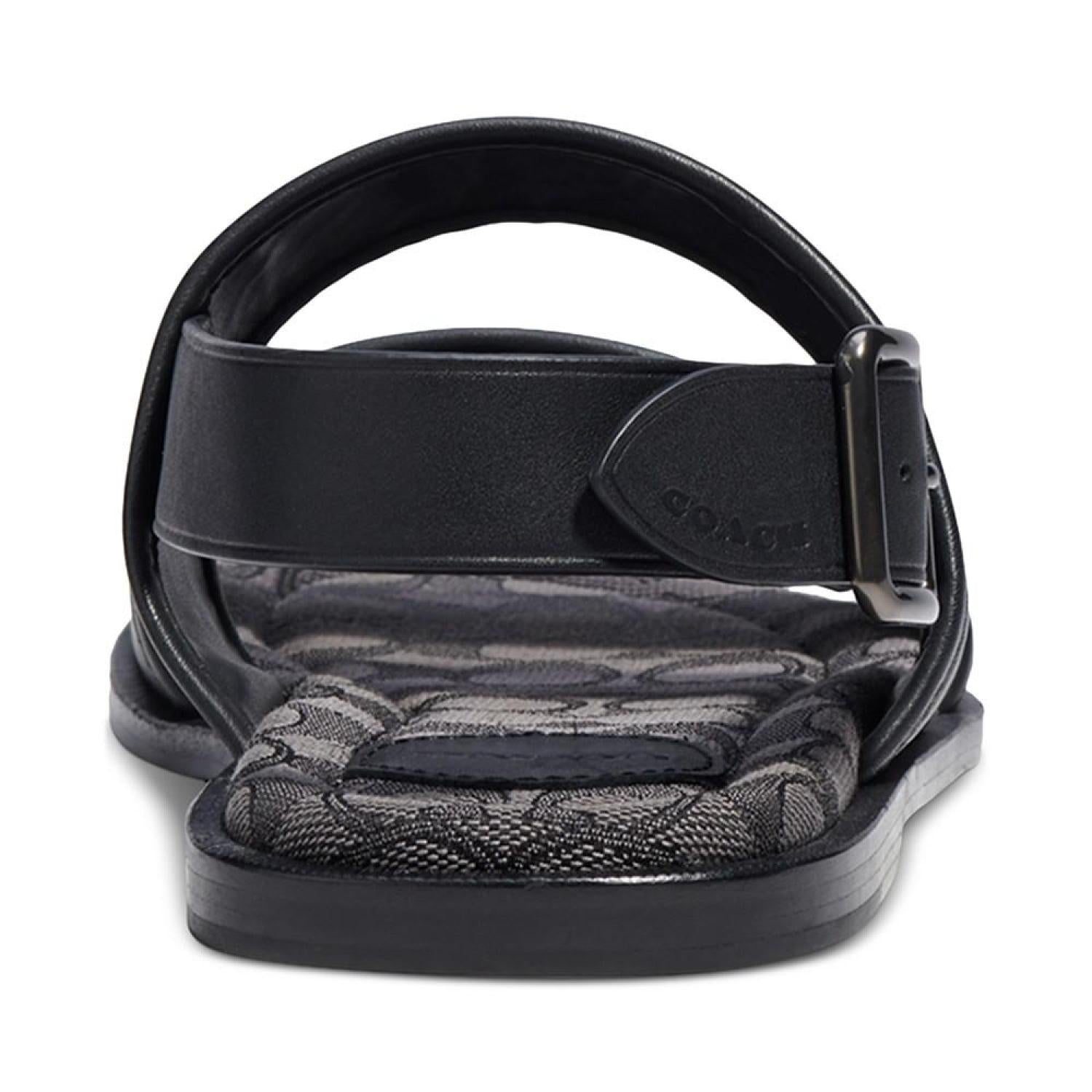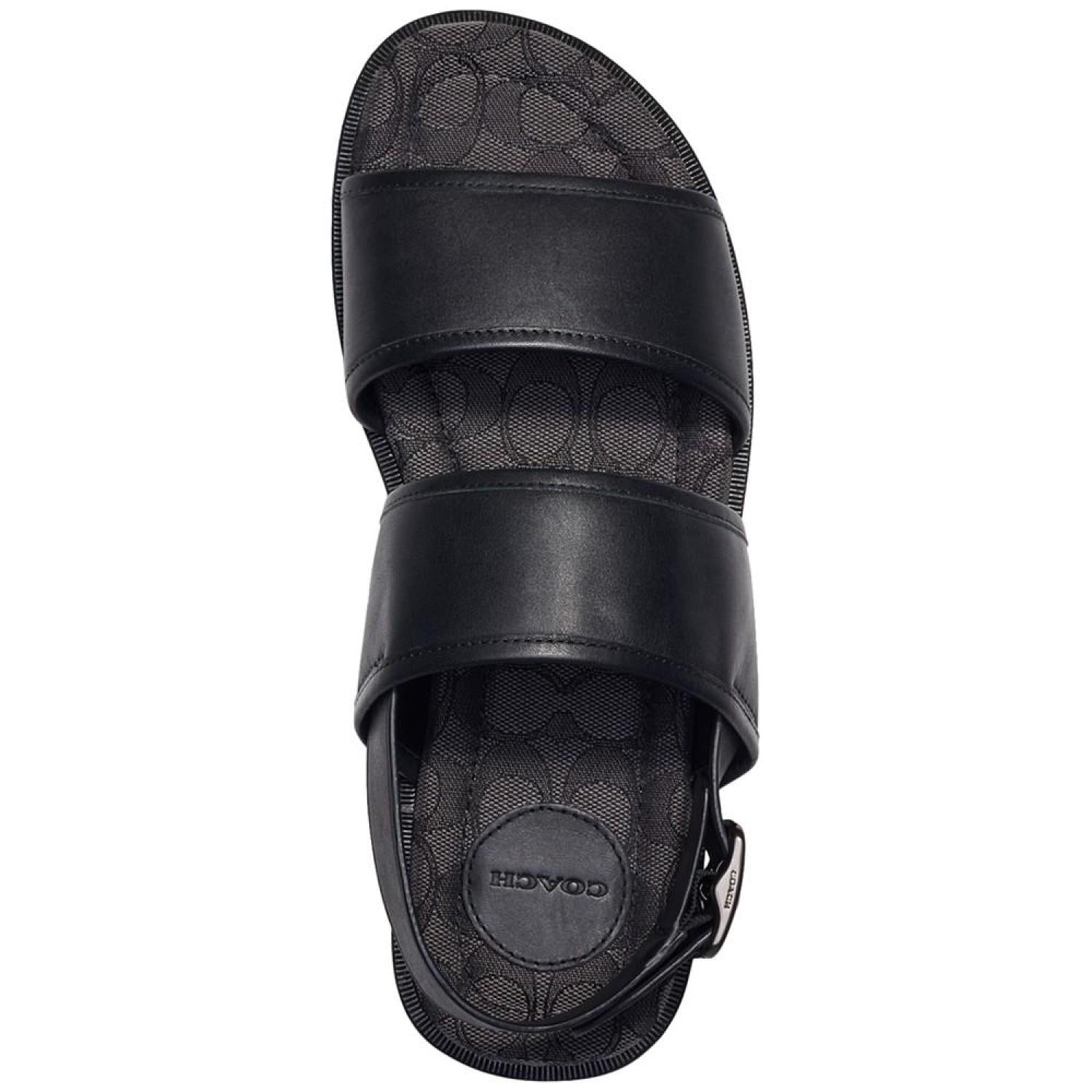 • Featuring a signature jacquard footbed, these leather two-strap sandals from COACH bring iconic, laid-back style to your casual wardrobe.