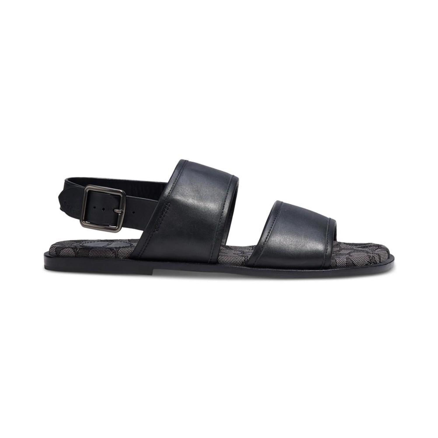 Men's Leather Two-Strap Sandal with Signature Jacquard Footbed
