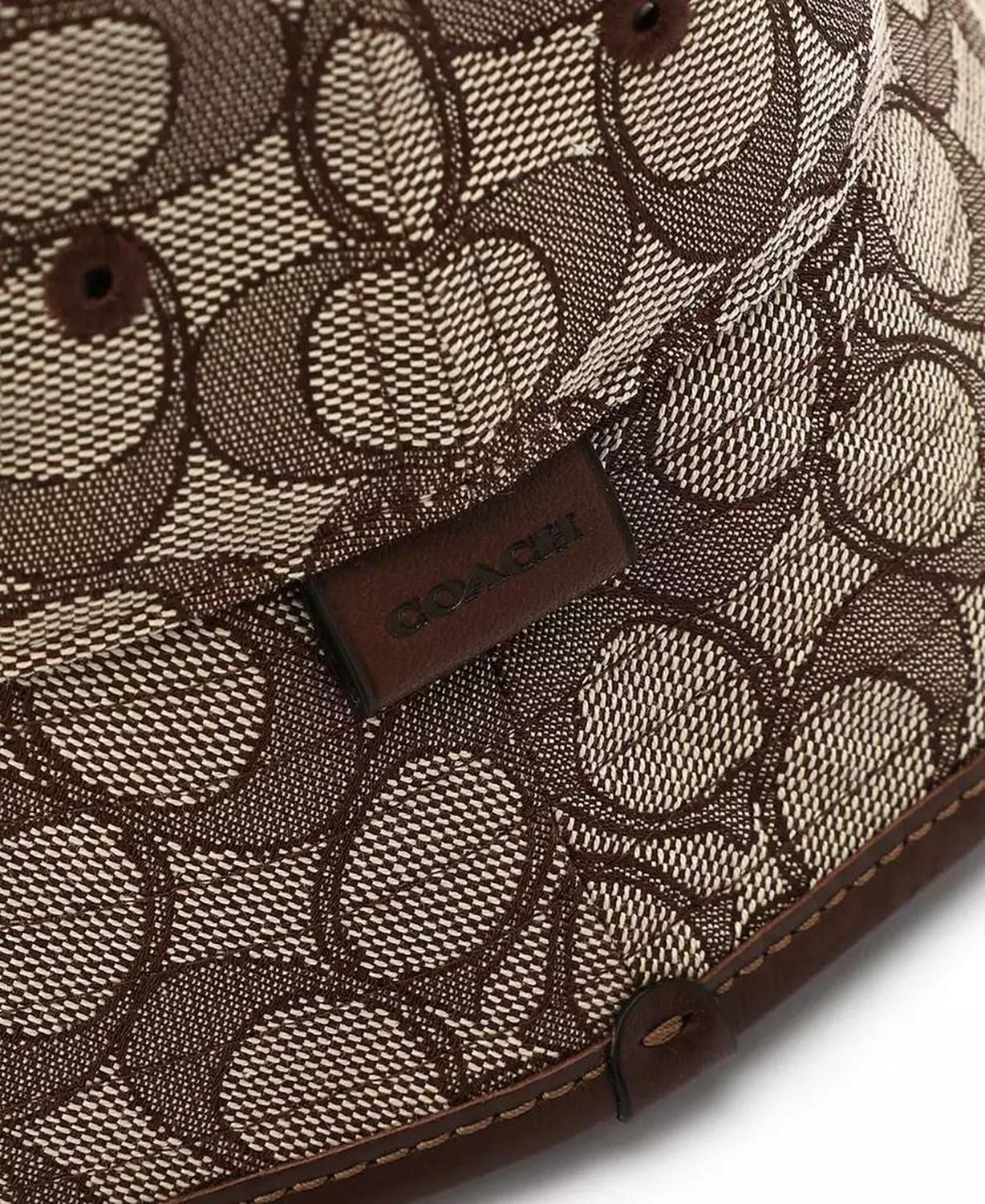 Adopt a retro-cool vibe with this hat from COACH, crafted from signature jacquard fabric. The classic bucket silhouette is suitable for adding a touch of elevated style to casual streetwear looks. Approx. 22-1/8" circumference Pull-on Woven bucket hat Crafted in signature C jacquard fabric This item purchased online must be returned to the vendor by mail only. This item cannot be returned to Macy's stores. 71% polyester, 29% cotton Hand wash Imported