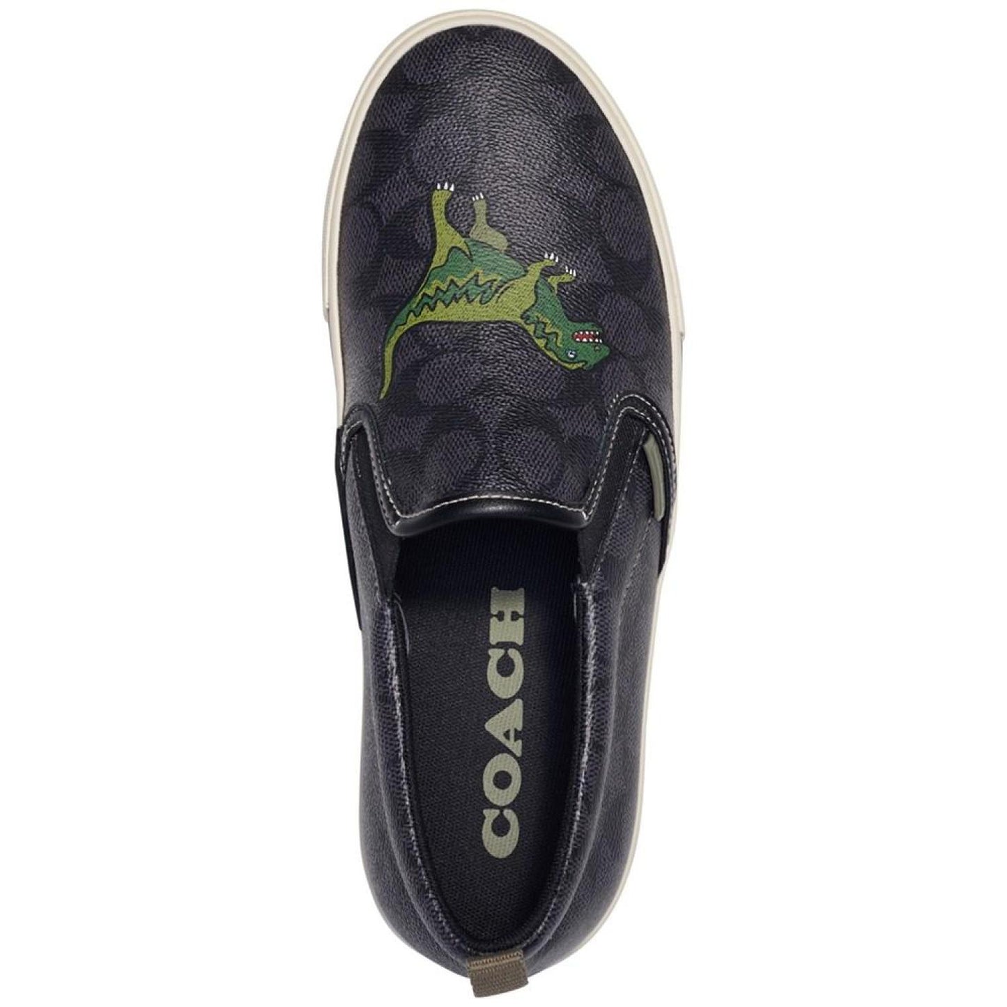 This slip-on sneaker is crafted of our signature canvas featuring fun-loving COACH mascot Rexy. Finished with smooth leather details, the cushioned insole and thick rubber sole make for comfortable, easy wear. Shoe width- medium Signature coated canvas and leather upper Cotton lining and footbed Rubber outsole Slip on This item purchased online must be returned to the vendor by mail only. This item cannot be returned to Macy's stores. Plastic, Upper- Leather, Outsole- Rubber, Lining- Cotton Spot Clean Imported