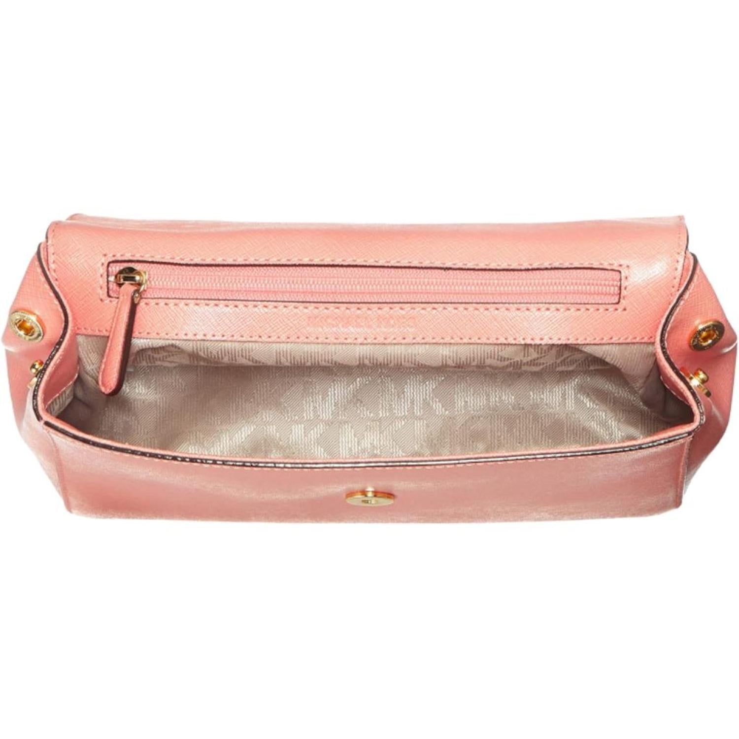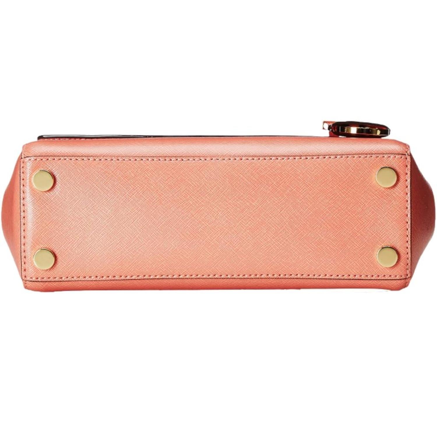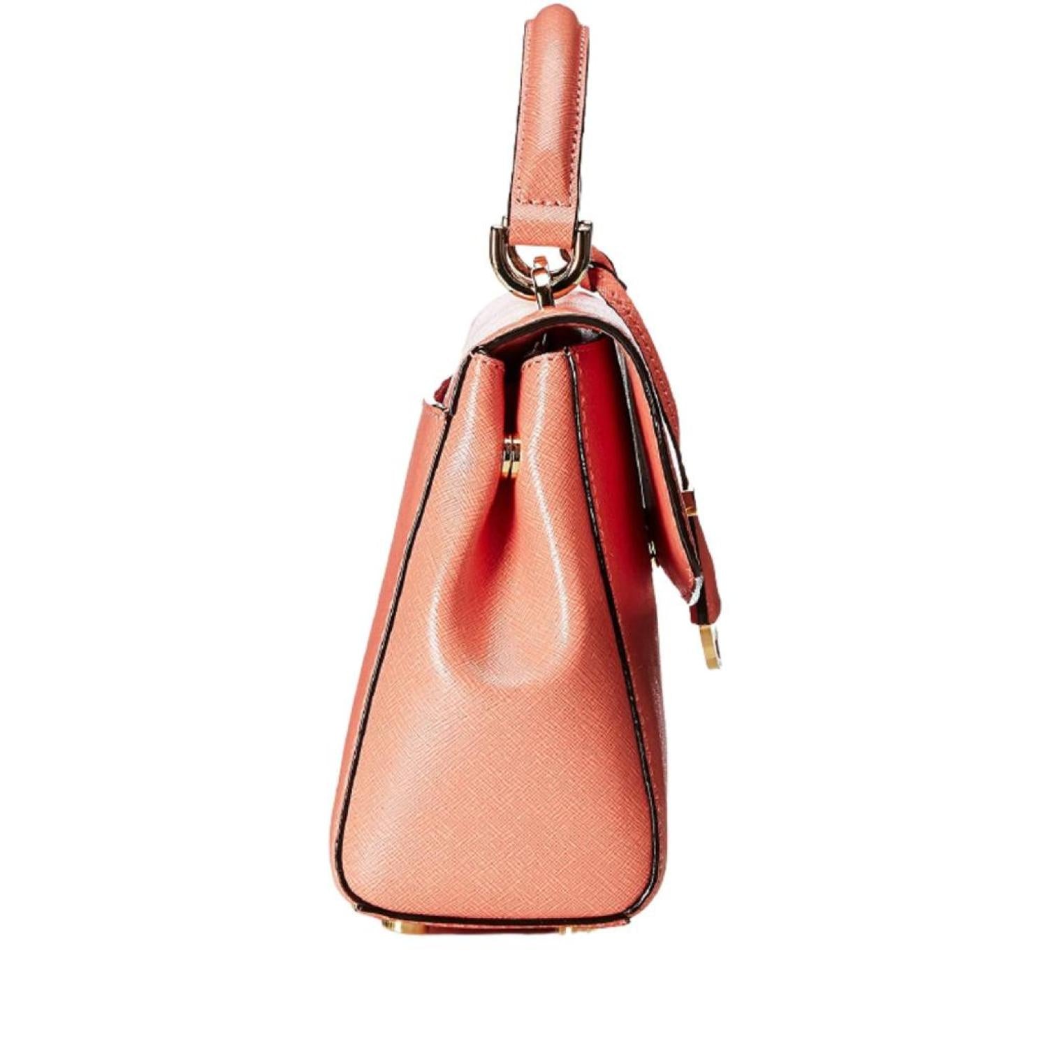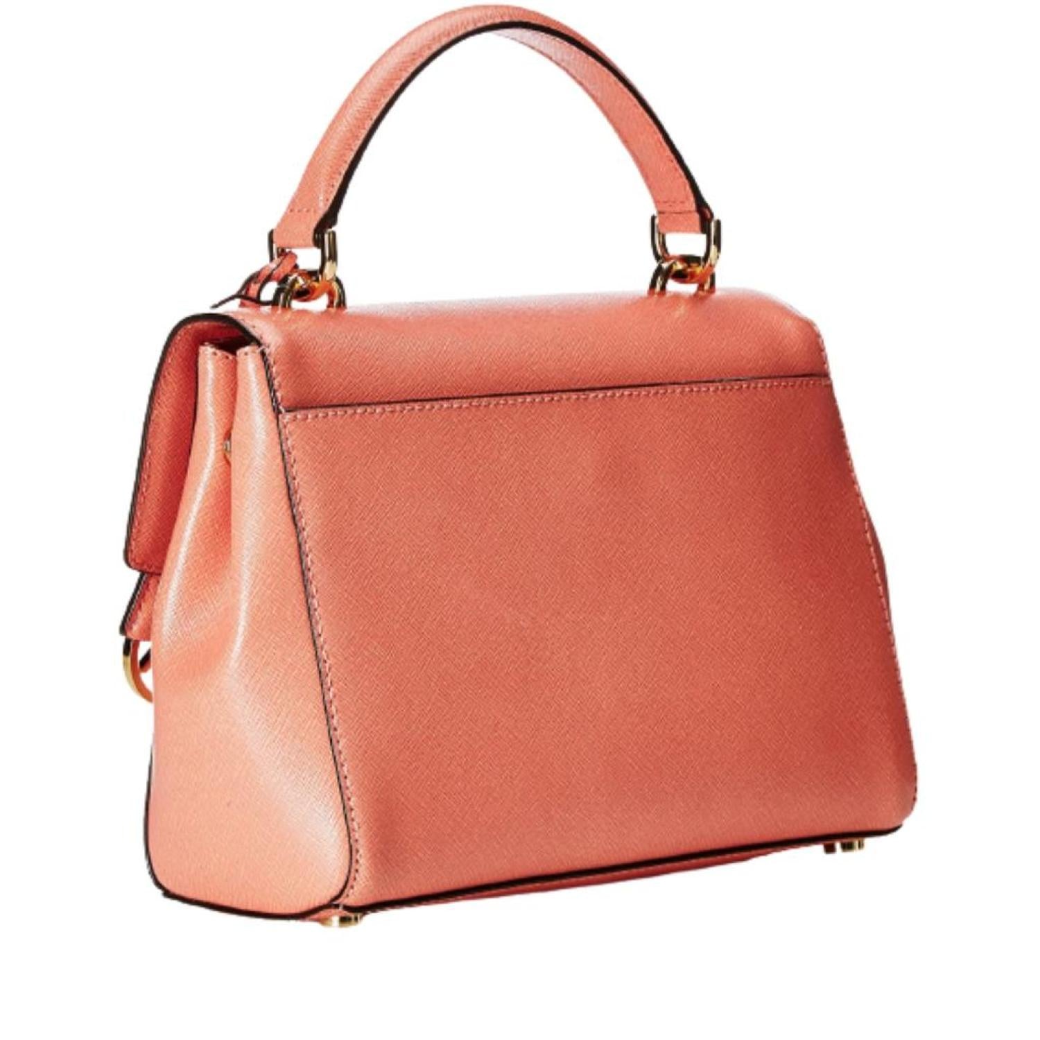 Made of Leather with top handle; Flap with Magnetic inside closure; Back open pocket with snap closure; 1 inside zip pocket 1 inside open pocket; Adjustable and detachable leather shoulder strap of 18-22 inches drop Leather handles of 4 inches drop; Gold hardware Measurements - Length - 9.75 x Height - 7 x Width - 4 Inches Comes with original tags