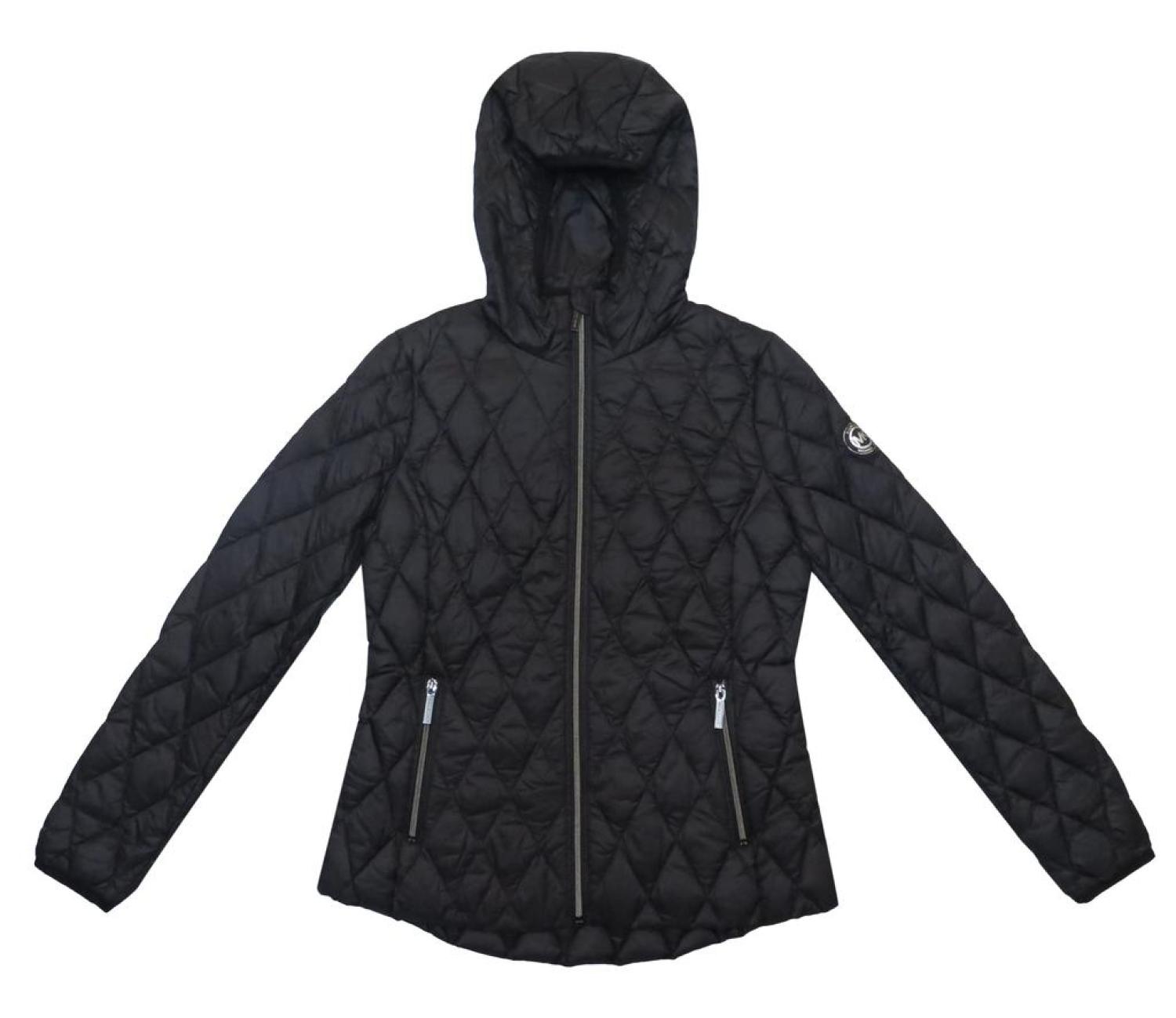 Michael Kors Black Diamond Quilted Hooded Down Puffer Packable Jacket Outerwear
