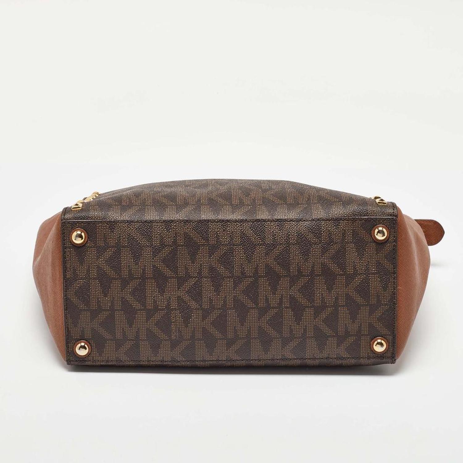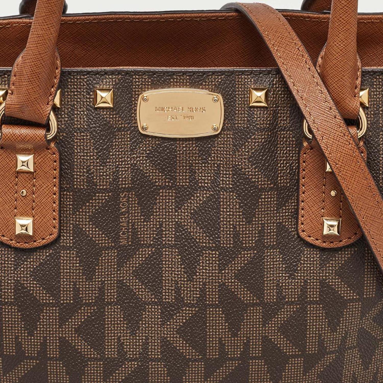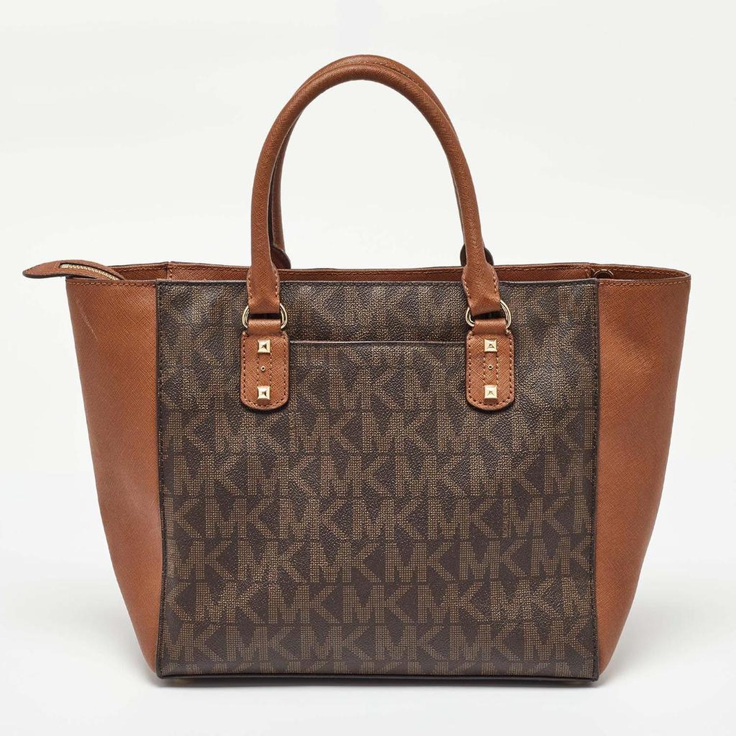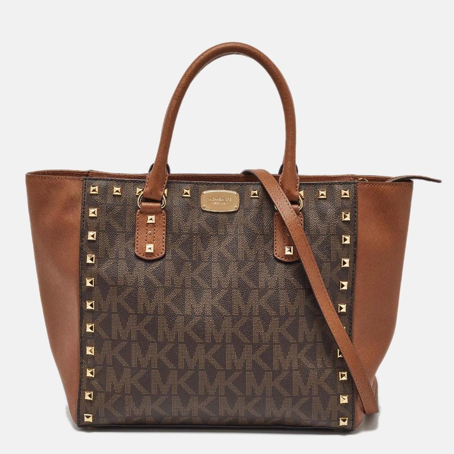 Michael Kors Brown Signature Coated Canvas And Leather Studded Sandrine Tote