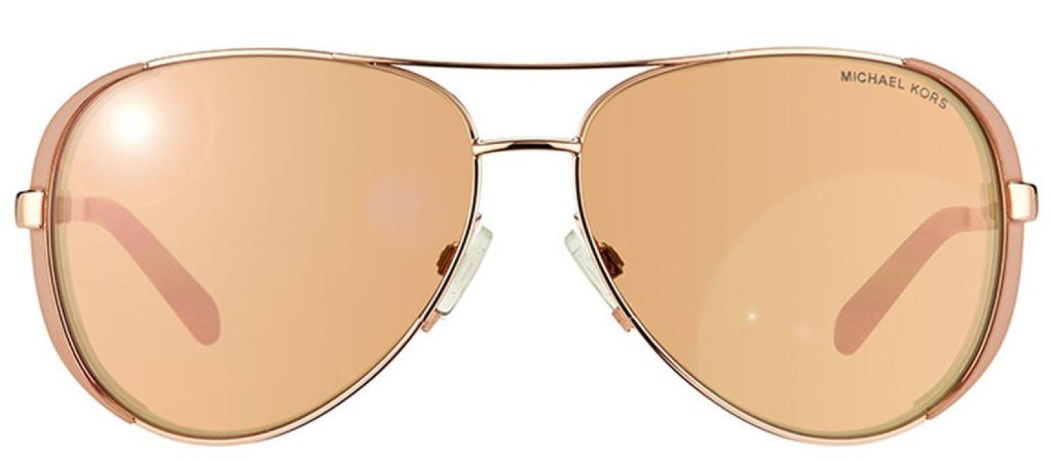 Michael Kors Chelsea MK 5004 1017R1 Womens Rose Gold/ Taupe Rose Gold Mirror Lens SunglassesFrame Color - Rose Gold/ TaupeFrame Style - AviatorFrame Material - MetalLens Color - Rose Gold Mirror LensProtection - UV ProtectedIncludes - Michael Kors case, cloth and paperwork *may vary from pictureSize - Lens 59 mm x bridge 13 mm x arms 135 mm All measurements may vary