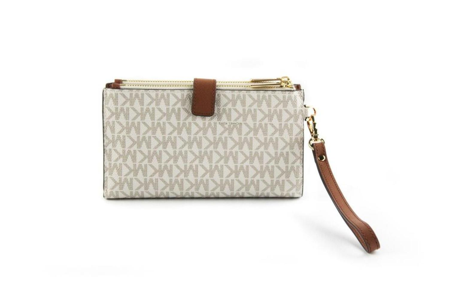 Michael Kors Jet Set Travel Signature Leather Large Double Zip Wristlet Women's Wallet