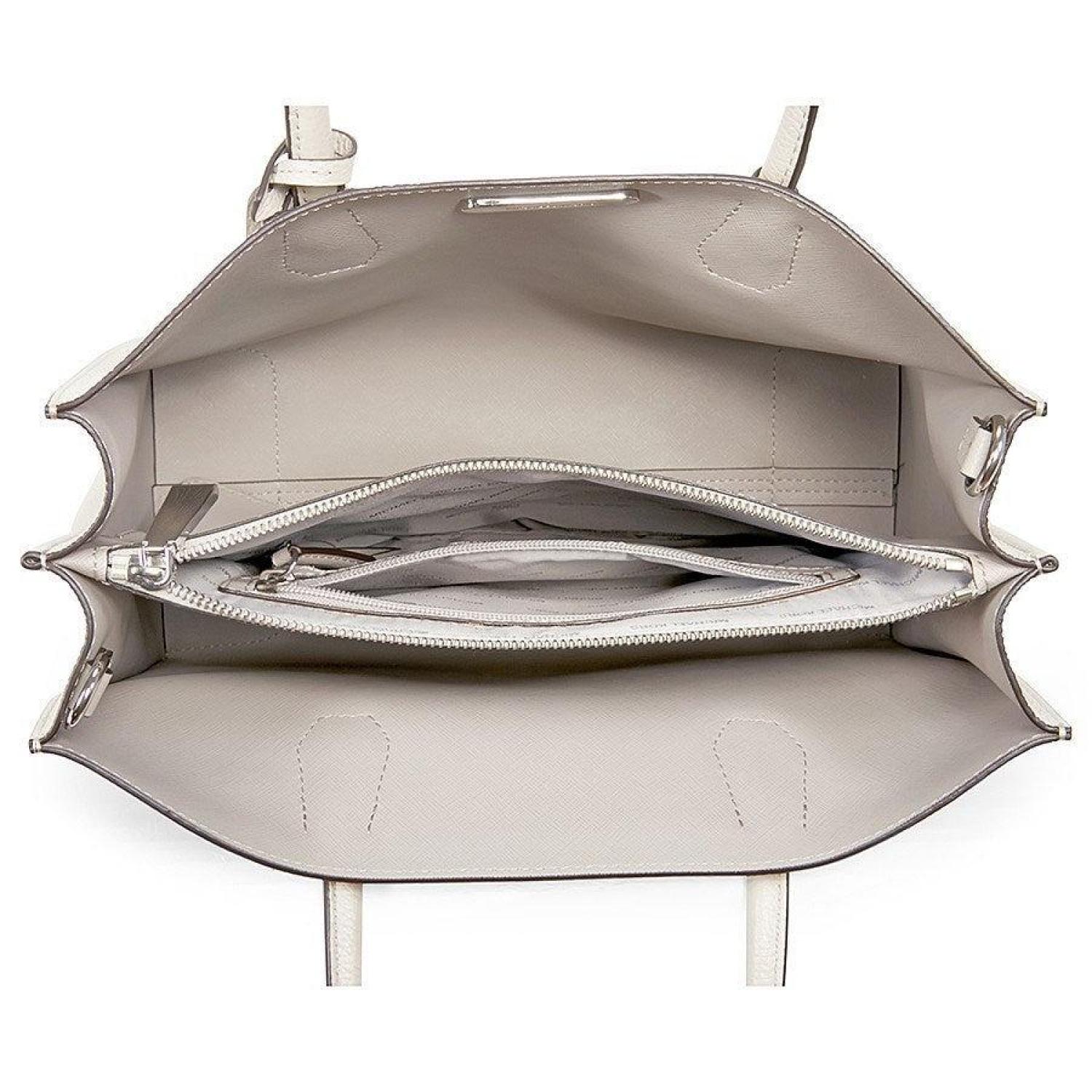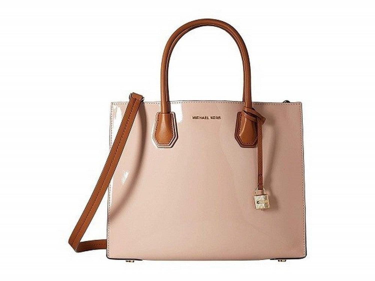 • Made of fine patent leather; Open top closure with letter detail on front; Middle zip compartment divides 2 large compartment; 1 inside zip pocket 2 inside open pocket; Charm lock detail; Adjustable, detachable Leather shoulder strap with 22-25 Inches drop Double Rolled leather handles with 6.5 Inches drop; Bottom feet for protection; Gold hardware Measurements - Length - 12.5 x Height - 10 x Width - 5.25 Inches Comes with original tags