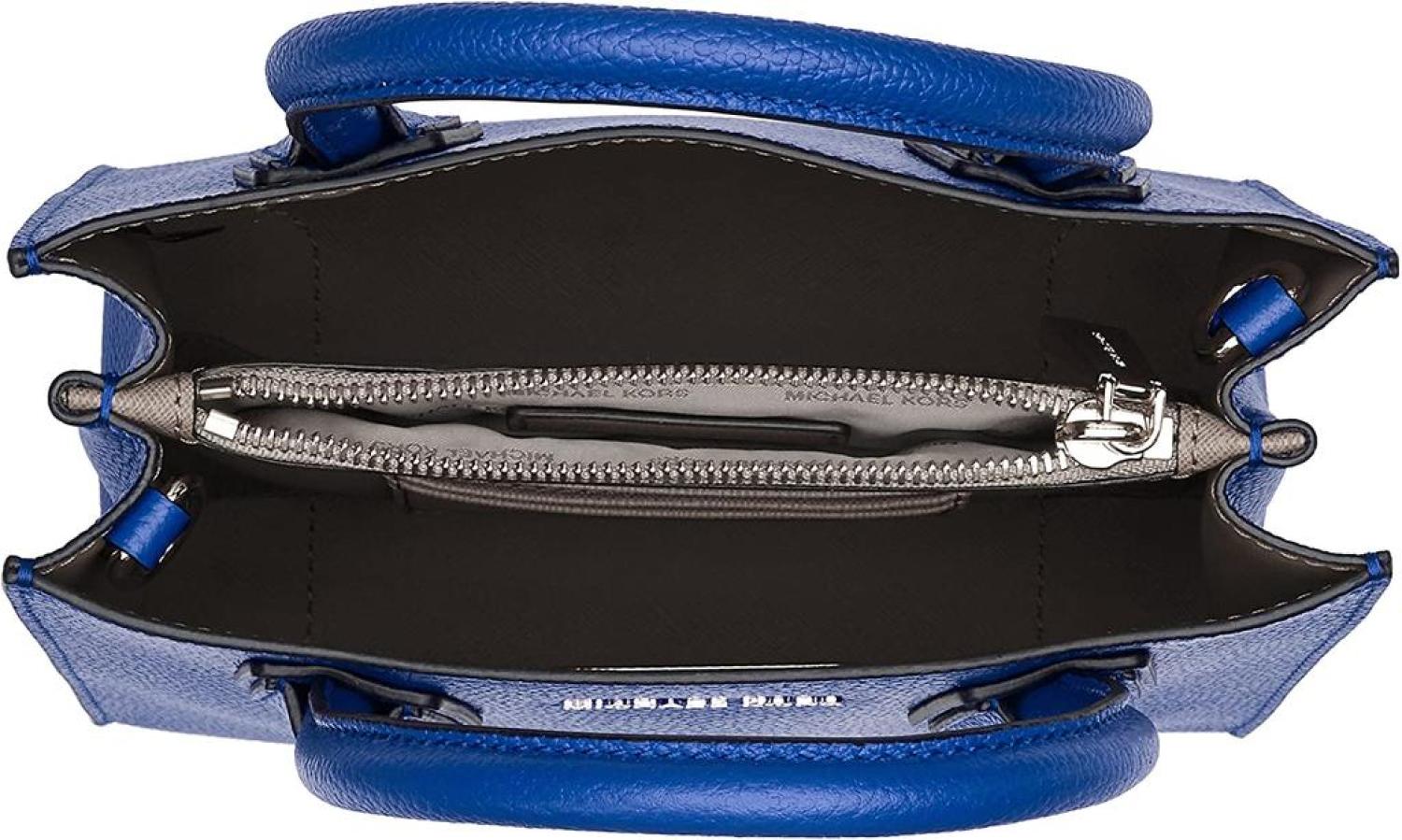 • Made of pebbled leather; Open top closure with letter detail on front; Middle zip compartment divides 2 large compartments; 3 credit card slots; Charm lock detail Double Rolled leather handles of 6.5 Inches drop; Adjustable, detachable Leather shoulder strap of 22-25 Inches drop Bottom feet for protection; Silver hardware Measurements - Length - 8.5 x Height - 8 x Width - 3 Inches Comes with original tags