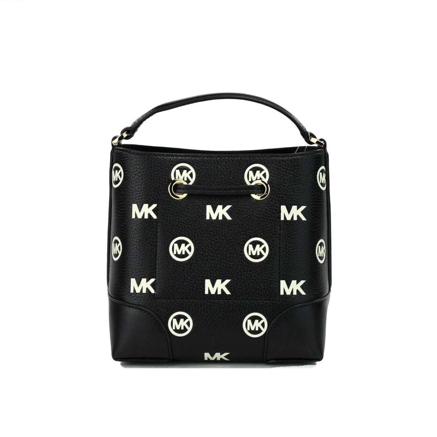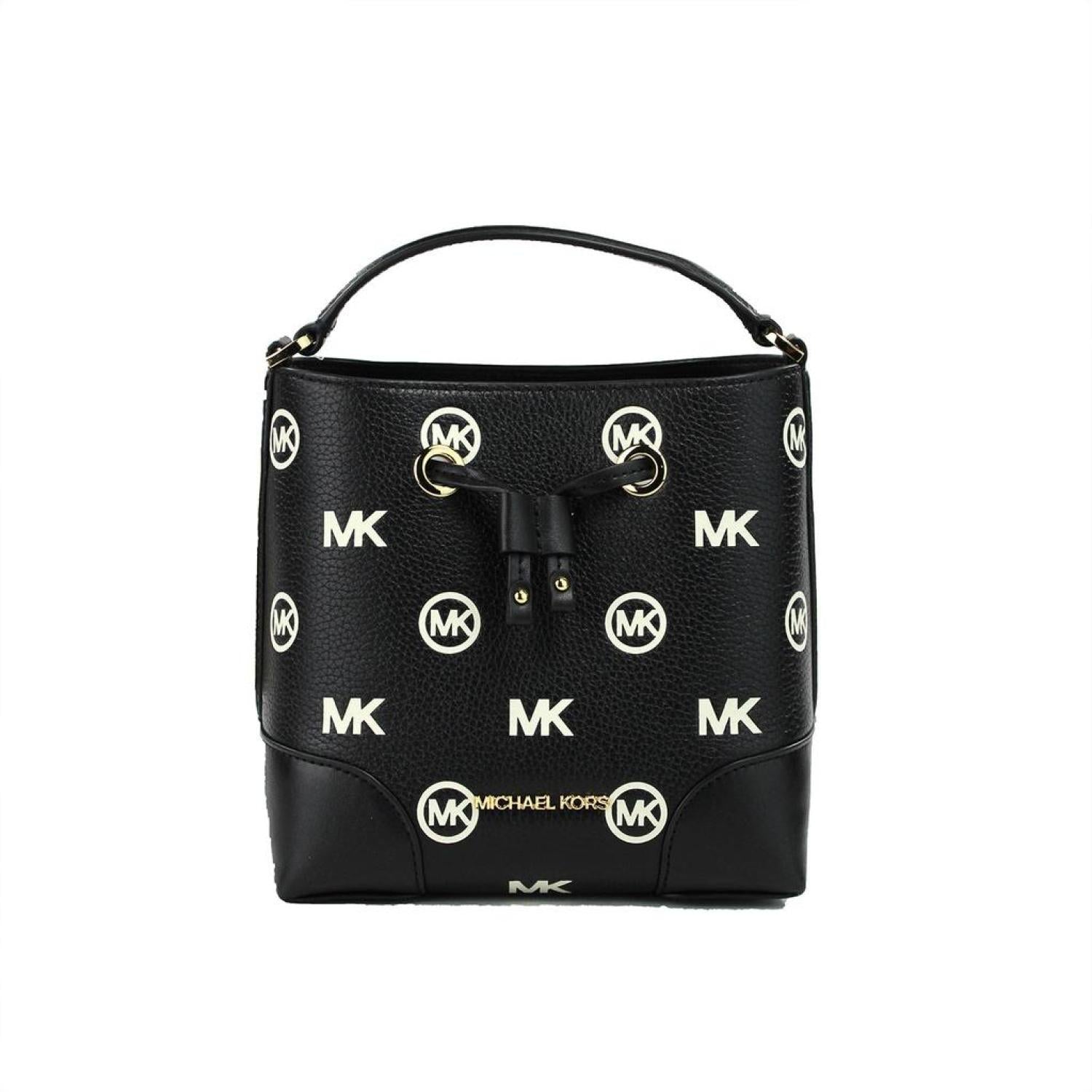 Style - Michael Kors Mercer Small Bucket Drawstring Handbag (Black)Material - Embossed Pebbled LeatherFeatures - Front MK Logo Plate Accent, Drawstring Closure, Adjustable/Detachable Crossbody StrapMeasures - 17.78 cm H x 19.05 cm W x 10.16 cm D