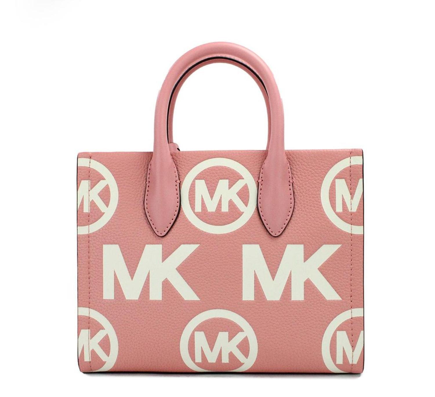 Style - Michael Kors Mirella Small Embossed Shopper Top Zip Tote Bag (Primrose)Material - Embossed Pebbled LeatherFeatures - Adjustable/Detachable Crossbody Strap, Inner Zip and Slip Pockets, Zip Top Closure, MK Bag CharmMeasures - 24.13 cm L x 19.05 cm H x 9.52 cm D