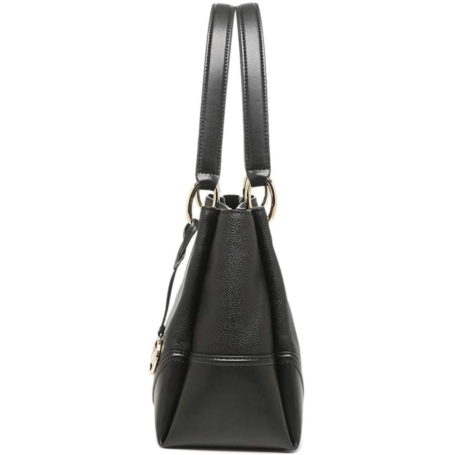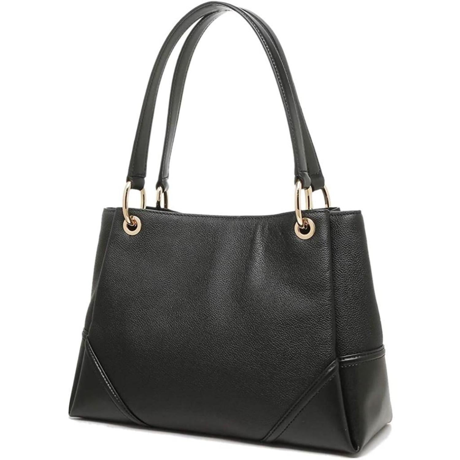 • Made of pebbled leather, Open top with snap closure, Large middle zip compartment, Two open compartments on both sides and snap closure. Zip pocket and one open pocket; Logo jacquard lining, Doubles shoulder strap of 11 inches drop. Gold or silver hardware. Measurements - Length - 14 x Height - 10.5 x Width - 5.5 Inches. Comes with original tags.