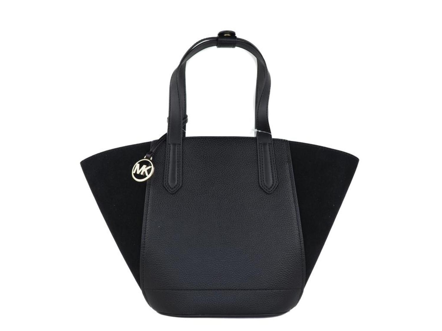 Brand New with Tags Attached (100% Authentic) Style - Michael Kors Portia Small Tote Bag (Black)Material - Pebbled Leather and SuedeFeatures - Interior Slip Pocket, Gold Toned MK Bag Charm, Snap Closure Tab on Handles, LightweightMeasures - 28.57cm W x 19.05cm H x 11.43cm D